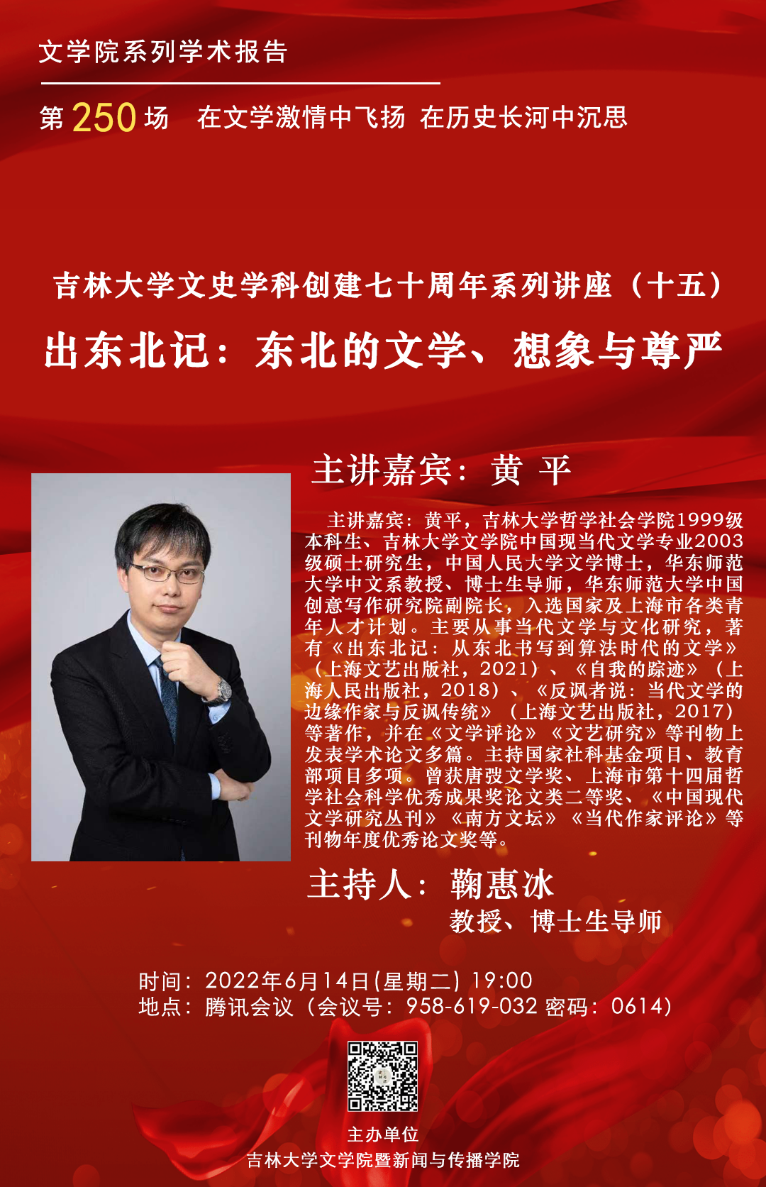 主讲人信息:黄平,吉林大学哲学社会学院1999级本科生、心博官方网站_心博(中国)中国现当代文学专业2003年硕士研究生,中国人民大学文学博士,华东师范大学中文系教授、博士生导师,华东师范大学中国创意写作研究院副院长,入选国家及上海市各类青年人才计划。主要从事当代文学与文化研究,著有《出东北记:从东北书写到算法时代的文学》(上海文艺出版社,2021)、《自我的踪迹》(上海人民出版社,2018)、《反讽者说:当代文学的边缘作家与反讽传统》(上海文艺出版社,2017)等著作,并在《文学评论》《文艺研究》等刊物上发表学术论文多篇。主持国家社科基金项目、教育部项目多项。曾获唐弢文学奖、上海市第十四届哲学社会科学优秀成果奖论文类二等奖、《中国现代文学研究丛刊》《南方文坛》《当代作家评论》等刊物年度优秀论文奖等。