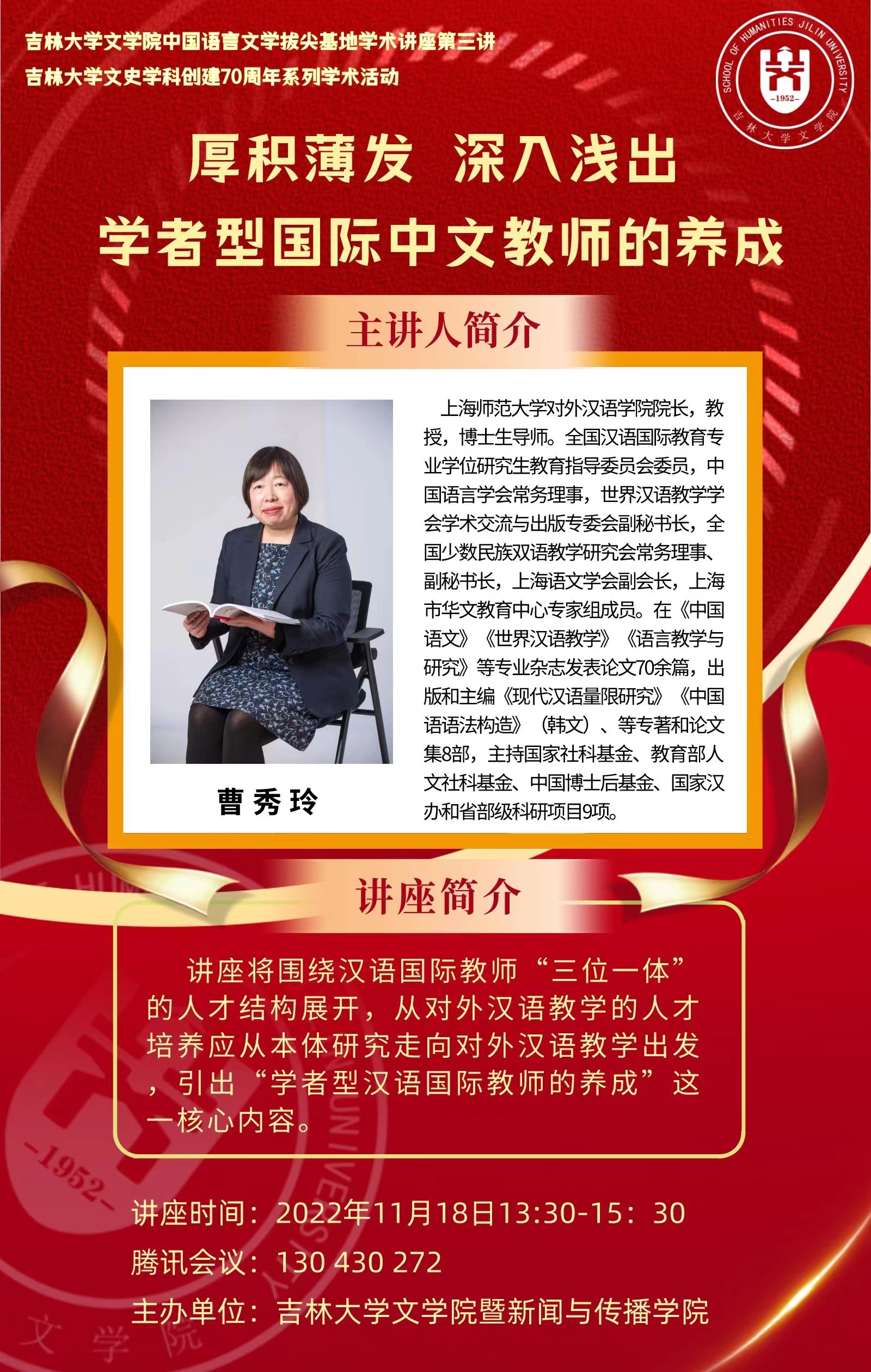 讲座题目:厚积薄发 深入浅出—学者型国际中文教师的养成