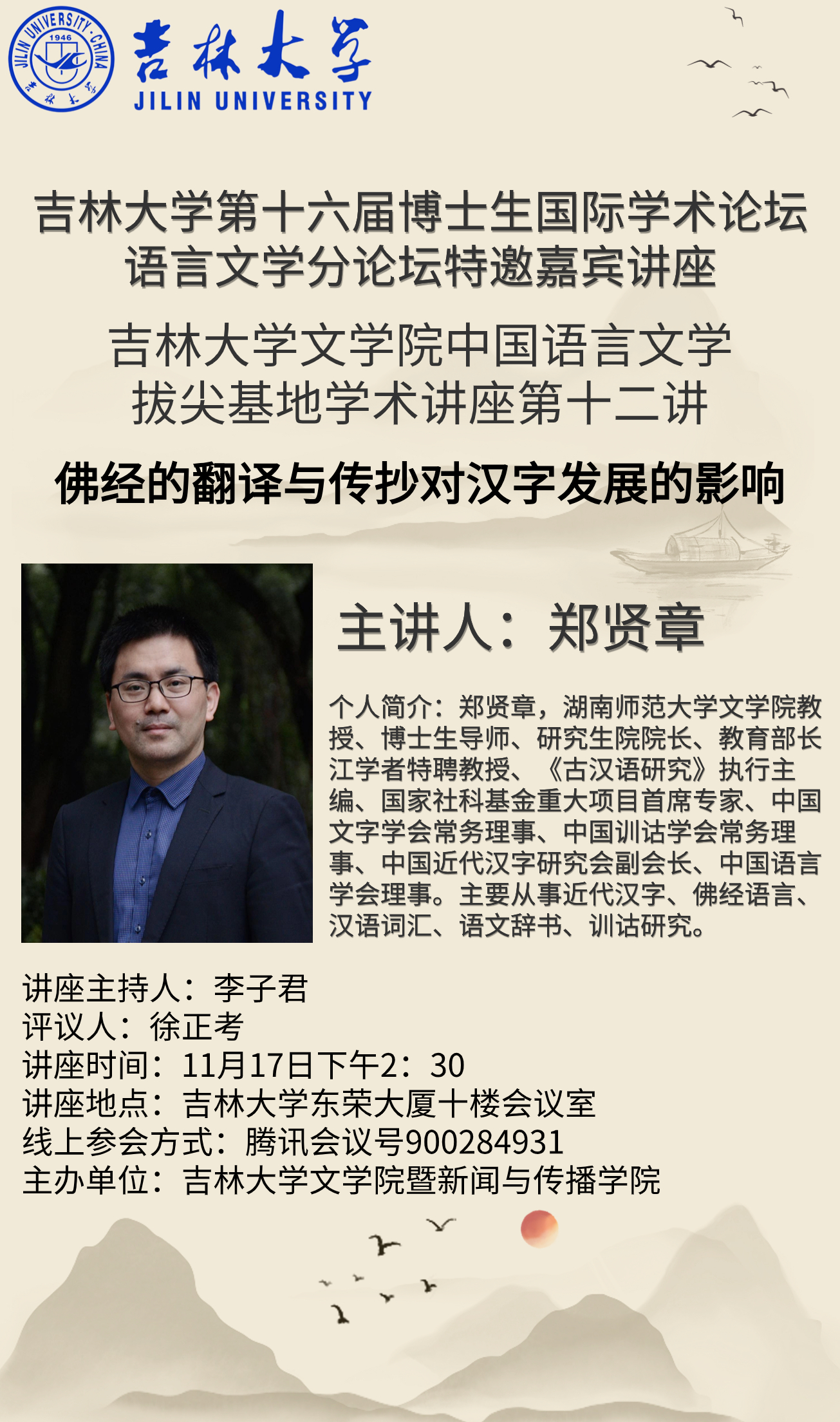 讲座题目:《佛经的翻译与传抄对汉字发展的影响》