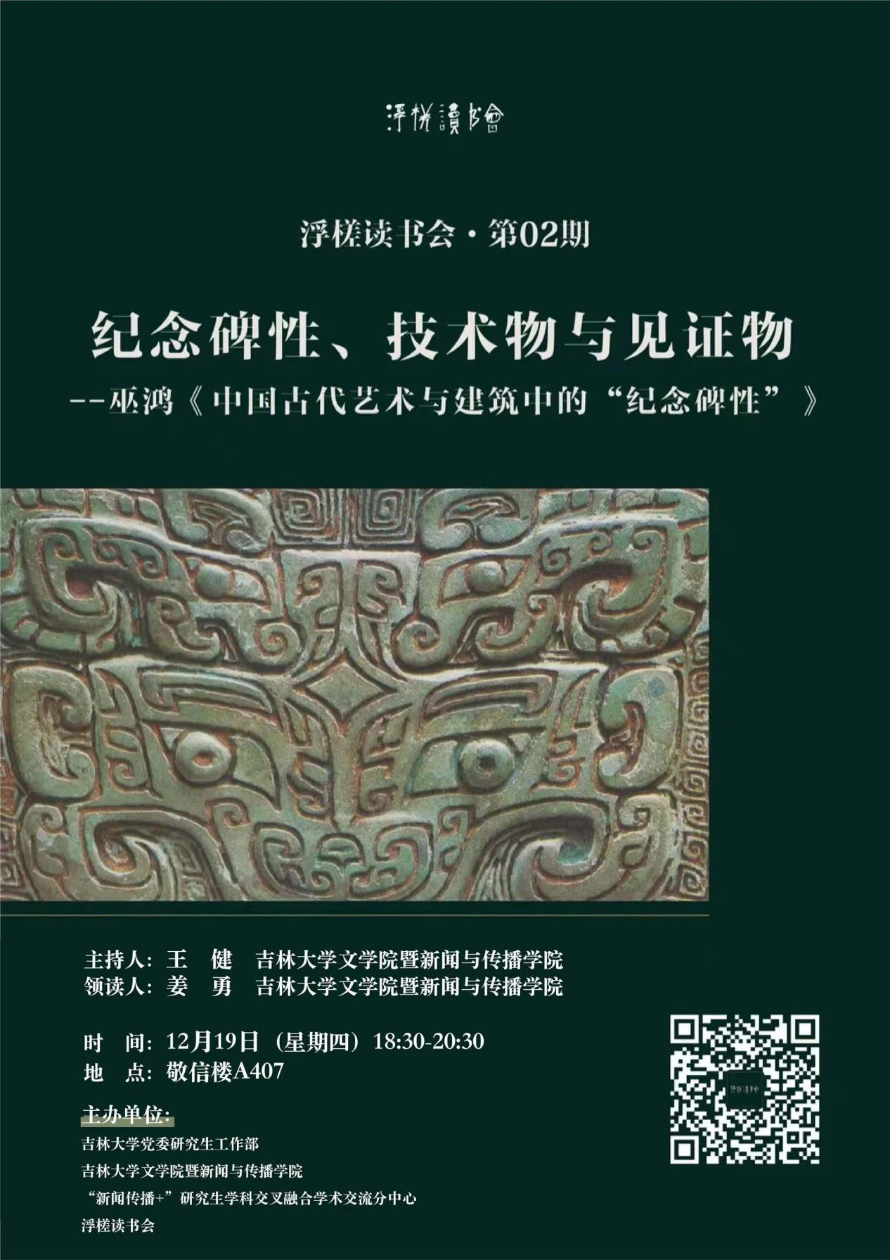 本次活动由党委研究生工作部、心博官方网站_心博(中国)暨新闻与传播学院、“新闻传播+”研究生学科交叉融合学术交流分中心、浮槎读书会共同主办。拟邀请姜勇教授,领读巫鸿经典著作《中国古代艺术与建筑中的“纪念碑性”》,围绕“纪念碑性、技术物与见证物”展开探讨。