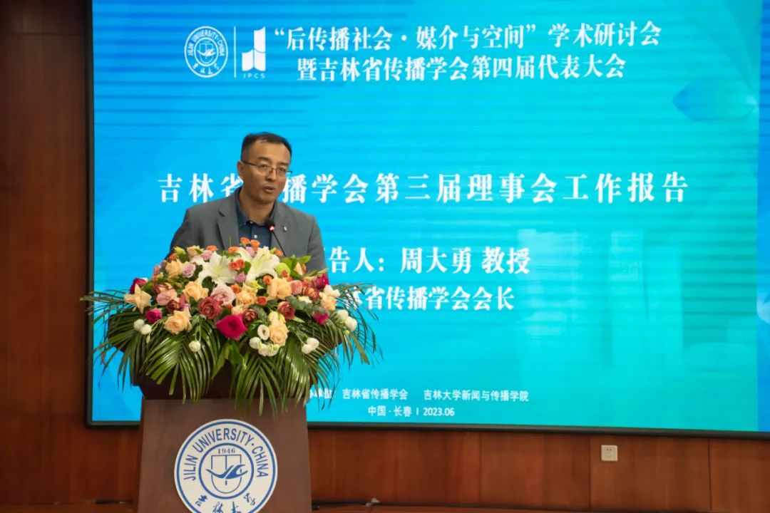 吉林省传播学会会长周大勇教授代表第三届理事会作工作报告,汇报了学会成果及未来五年的工作展望。近年来,吉林省传播学会举办多场学术会议,促进学术交流;聚焦“城市传播”,推出了长春城市文化系列图书;助力培养东北文创人才,推动地域文化的“活化”;在“新传播”优秀学术成果奖评选活动中获奖颇丰;理事会成员聚焦东北议题的研究,致力于推进东北文化传播;获得“全国社科先进社会组织”的荣誉。在未来,学会将凝聚各方共识,为东北振兴贡献自己的力量。