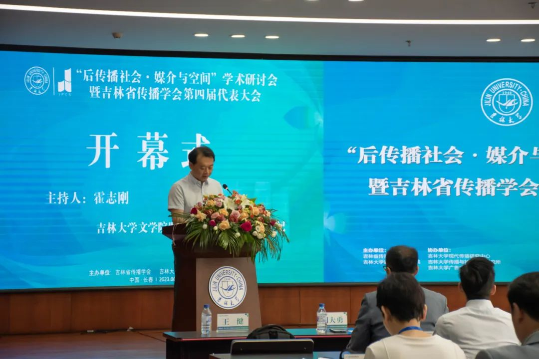 6月24日,“后传播社会·媒介与空间”学术研讨会暨吉林省传播学会第四届代表大会在吉林大学鼎新图书馆4楼多功能厅成功召开,会议由吉林省传播学会联合吉林大学新闻与传播学院主办,由吉林大学现代传播研究中心、吉林大学传播与社会治理研究所、吉林大学广告文化研究中心协办。来自复旦大学、北京师范大学、同济大学、华中科技大学、吉林大学、暨南大学、东北师范大学等30多所高校和多家媒体单位120余位专家学者参加了此次学术研讨会。开幕式由心博官方网站_心博(中国)党委书记霍志刚主持,吉林省委宣传部新闻处处长马研,吉林省社科联学会工作处处长全一,吉林大学党委组织部部长、社会科学研究院院长姚毓春教授等领导出席开幕式。厦门理工大学原副校长、教育部新闻传播学类教指委委员、厦门大学新闻传播学院博士生导师赵振祥教授,教育部新闻传播学类教指委委员、延边大学朝汉心博官方网站_心博(中国)新闻系李逢雨教授,吉林动画学院副董事长刘欣教授,暨南大学新闻与传播学院副院长、博士生导师、“国家百千万人才工程”入选者、国家有突出贡献中青年专家、国家社科基金重大项目首席专家曾一果教授,教育部人文社科重点研究基地“复旦大学信息与传播研究中心”副主任、复旦大学新闻学院博士生导师潘霁教授,北京师范大学新闻传播学院副院长、博士生导师周敏教授,华中科技大学新闻与信息传播学院博士生导师、袁艳教授,同济大学艺术与传媒学院博士生导师、王冬冬教授;宁波工程学院人文与艺术学院副院长、肖荣春教授等嘉宾出席了开幕式。