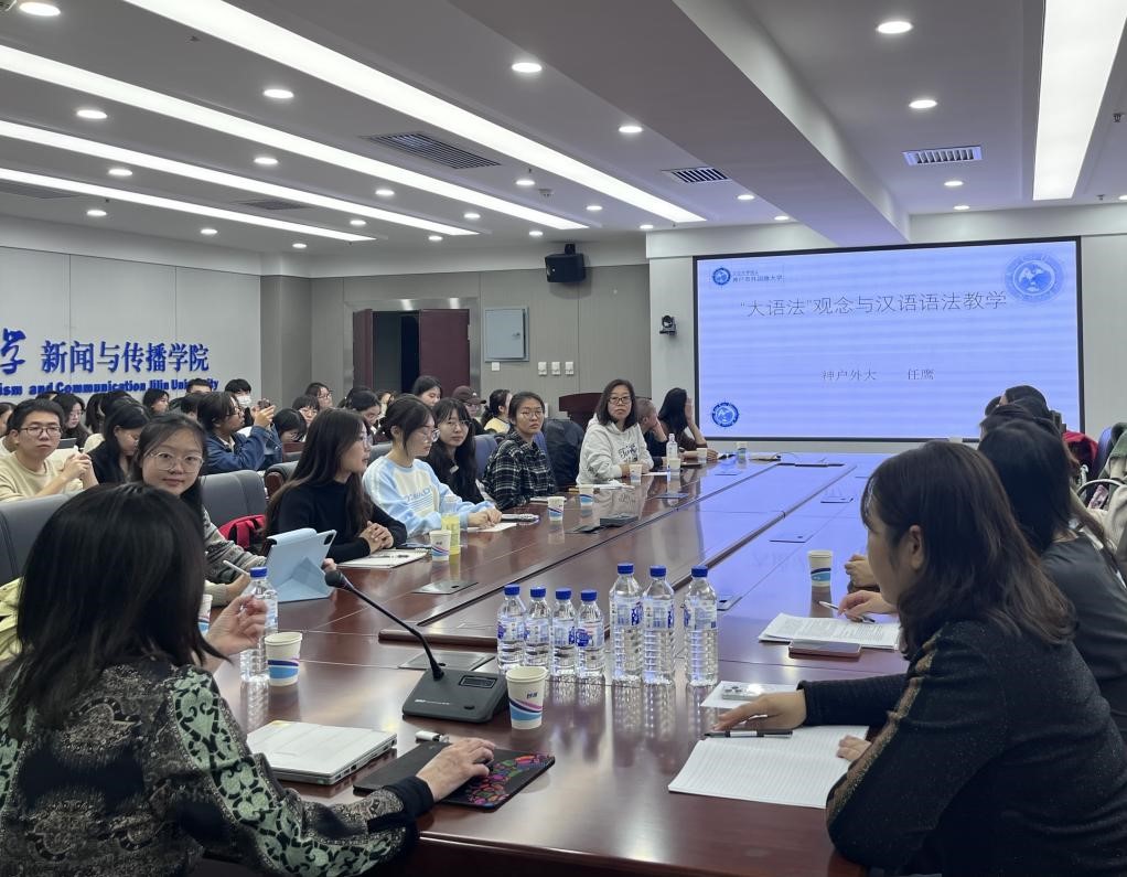 2024年11月8日,日本神户市外国语大学中文系教授、博士生导师任鹰教授在东荣大厦十楼会议室为我院师生带来题为《“大语法”观念与汉语语法教学》的学术讲座。讲座由周莉教授主持,由刘艳茹教授进行总结评议,心博官方网站_心博(中国)的王倩老师、王岩老师、李剑影老师和张苗苗老师等师生共同参加讲座。