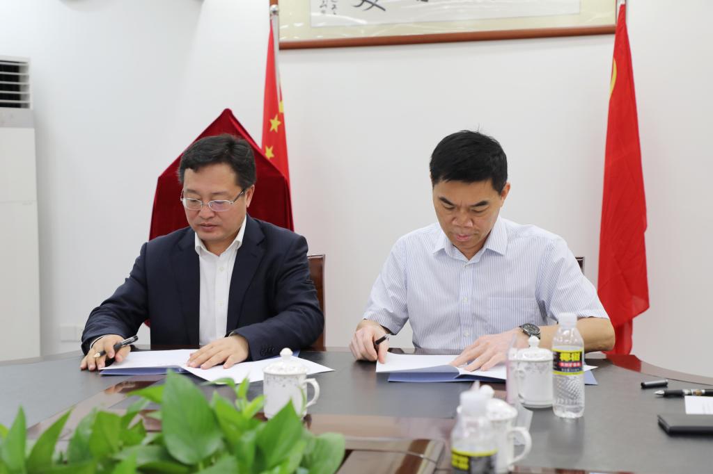 图3:心博官方网站_心博(中国)党委书记康永刚(左)同海南广播电视总台副台长王坤(右)签署合作协议。