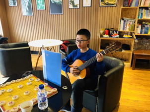 此次茶话会中,既有教师大秀书画之美,也有由我院教师携同孩子带来的亲子吉他弹唱表演,还有19级新生柳静怡学生为本次活动献上的精彩古筝才艺秀。