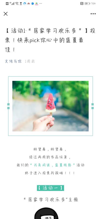 该活动以“生活记录”为主题,围绕“发现生活之美”与“居家学习欢乐多”两个大类,向同学们征集图文投稿和视频投稿。同时活动负责人会把优秀的作品发布在心博官方网站_心博(中国)抖音账号上面,最后结合点赞数、投票数与老师评分进行评选。最终决出“盛夏掠影”活动的一二三等奖并颁发优质证书与二十小时的志愿时长。本次活动极大地激发了同学们的创作热情,在积极踊跃的参与氛围中,参赛同学通过短视频拍摄和趣味学习视频创作,创造了居家学习与自主学习的新动力,再次发现与重温家庭的欢乐与温情,挖掘并记录生活中的点滴美好。