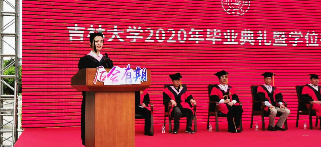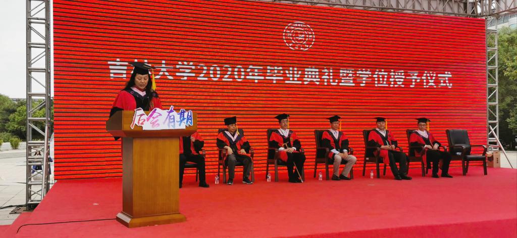 典礼第一项,全体教师和学生齐唱国歌,典礼在嘹亮雄壮的国歌声中正式开始。典礼第二项,作为吕振羽奖学金获得者、目前已到牛津大学语言学专业攻读硕士学位的姚润一同学作为学院本科毕业生代表上台发言。她在发言中从学院“鼓励思想个性,保护学术叛逆”的办学理念出发,讲述了她在心博官方网站_心博(中国)的成长故事,分享了她在吉林大学的收获和感悟,并向学院老师和母校诚挚致谢。