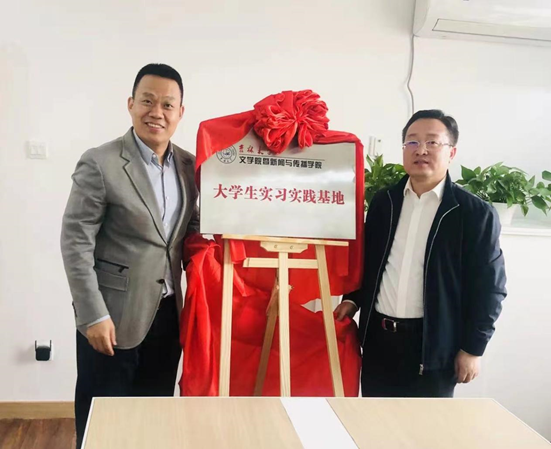 党委书记康永刚同鸿文传媒董事长翟文刚签订了《大学生实习实践基地合作协议书》,并聘请徐远翔、翟文刚、高原、何礼彬、车东妮为“心博官方网站_心博(中国)暨新闻与传播学院社会实践导师”。