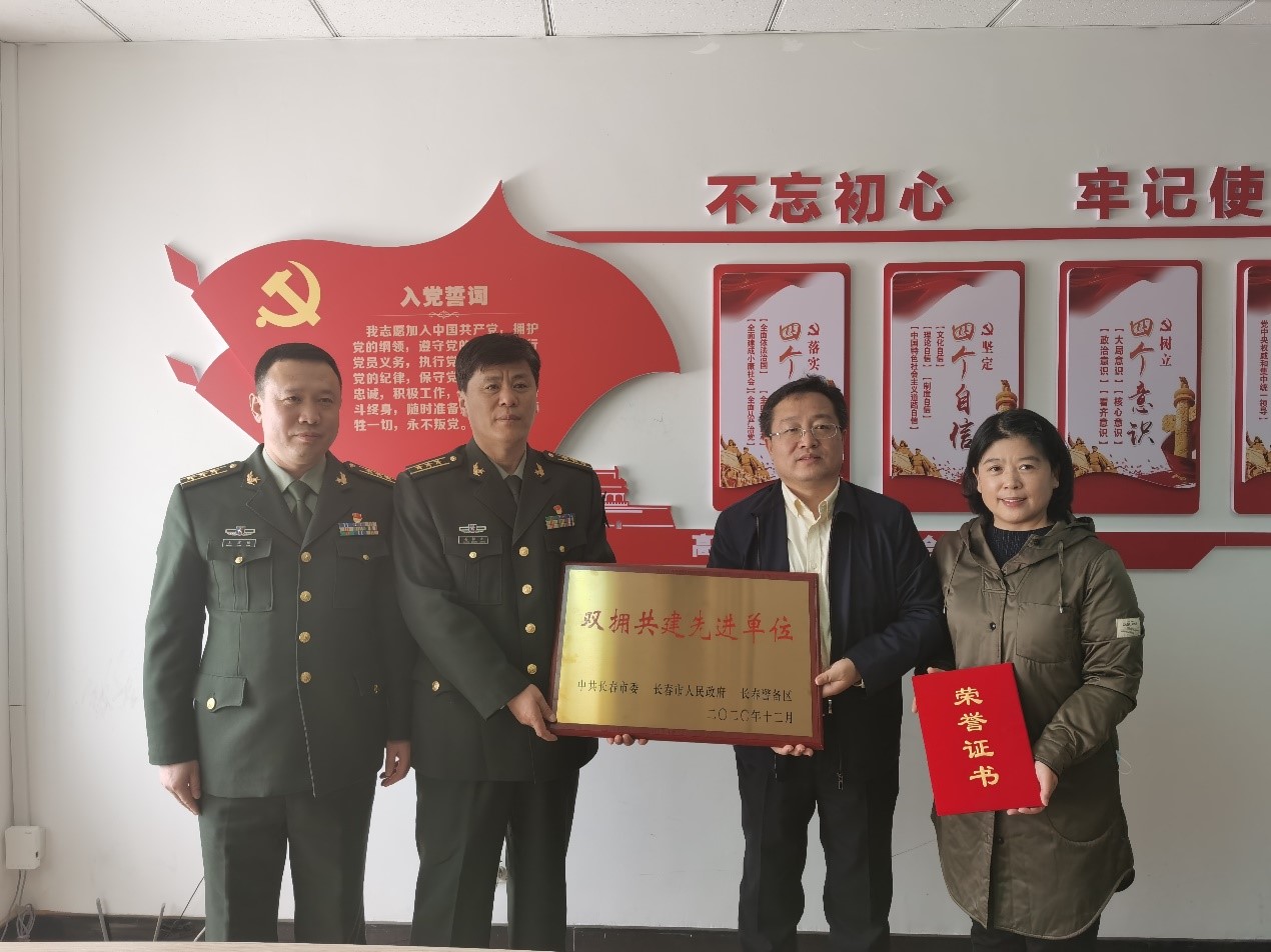 会后,军校双方共持荣誉牌匾合影留念。