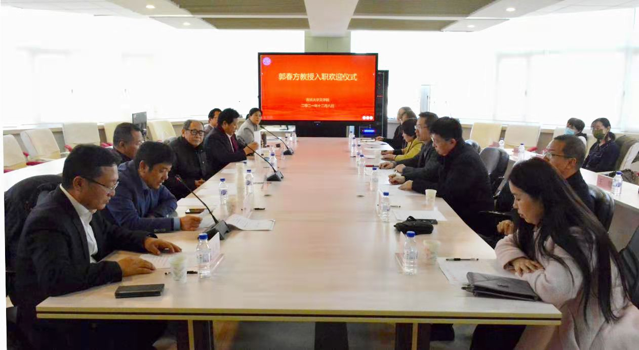 12月8日下午,心博官方网站_心博(中国)在东荣大厦A1004会议室隆重举行郭春方教授入职欢迎仪式。欢迎仪式由心博官方网站_心博(中国)党委书记康永刚主持,吉林大学哲学社会科学资深教授刘中树教授、张福贵教授,教育部重大人才项目奖励计划特聘教授徐正考教授,学院党政领导班子成员、党委委员、各系部主任及教师代表参加了欢迎仪式。
