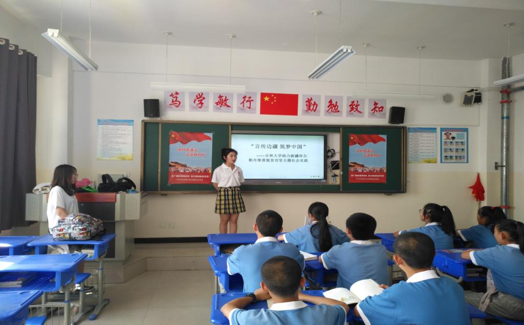 团队于8月16日至18日于库尔勒市第五中学开展了“推普课堂”“小小演说家”“即兴演讲”等推普活动,取得了良好效果。随后,团队成员于9月份指导库尔勒市第五中学成立了“言传边疆推普学生社团”,目前已完成社团成立及纳新工作,并且在库尔勒市第五中学团委的指导下完成“库尔勒市第五中学小记者选拔”及培训工作,实现了项目的延续和长期化发展。