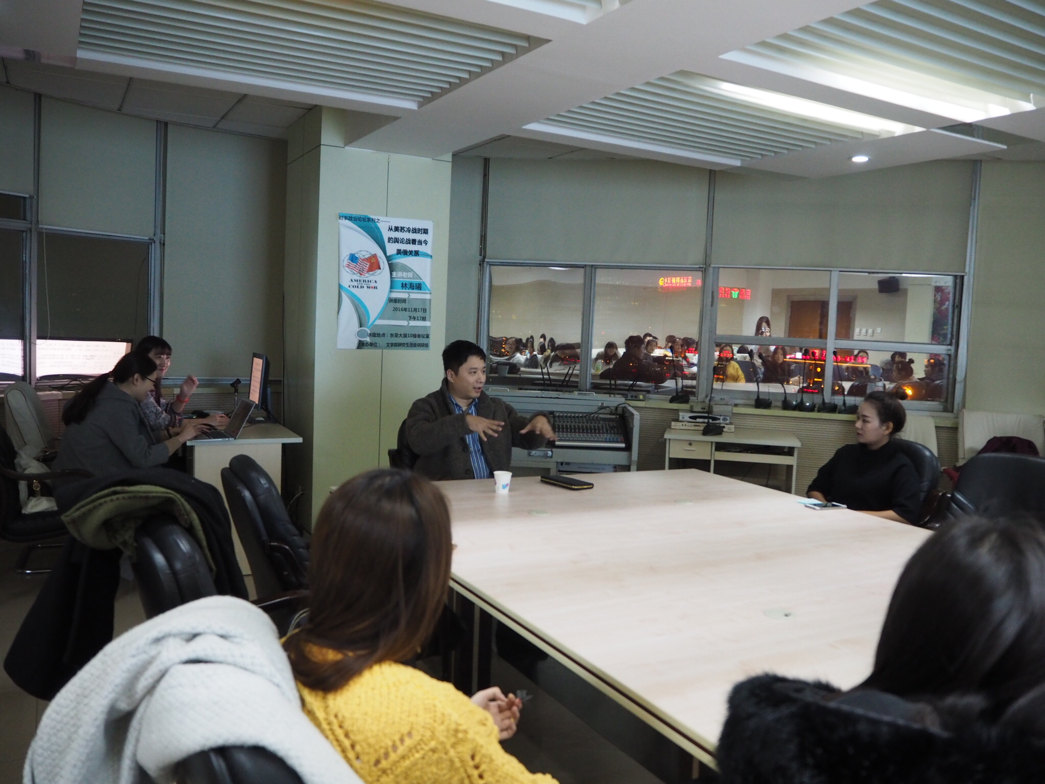 2016年11月17日晚五点,由心博官方网站_心博(中国)研究生团委调研部主办的时事政治论坛系列活动的题为《从美苏冷战时期的舆论战看当今美苏关系》的专题讲座在中心校区东荣大厦十楼会议厅成功举办。心博官方网站_心博(中国)暨新闻与传播学院新闻理论教研室林海曦老师应邀主讲,学院部分研究生党员代表、积极分子代表参加了此次报告会。