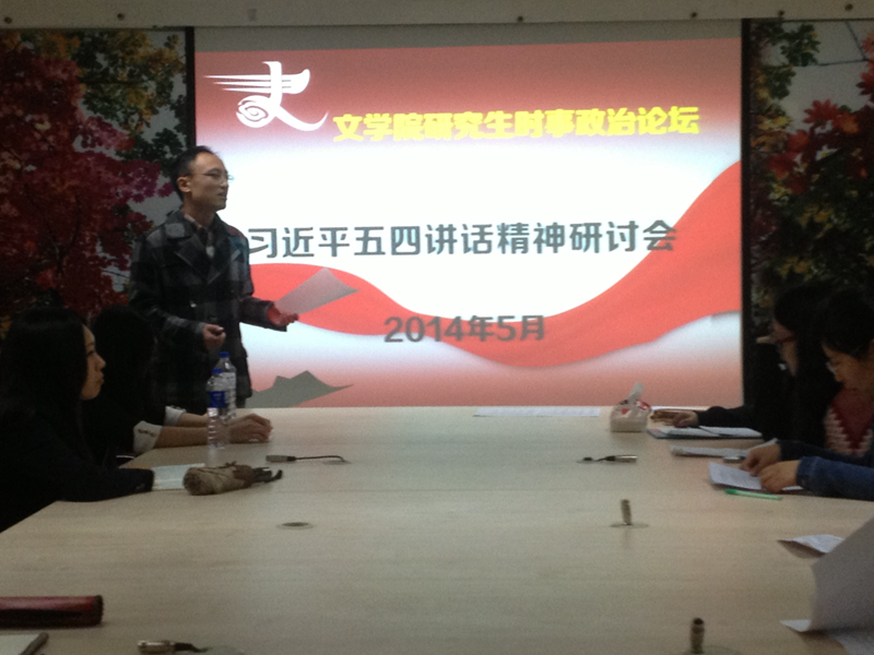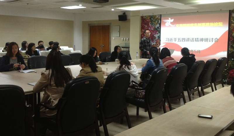 为了深入学习领会、全面贯彻落实习近平总书记五四青年节在北京大学的重要讲话,进一步理解社会主义核心观的丰富内涵,2014年5月15日下午6点30分,心博官方网站_心博(中国)研究生团委在东荣10楼会议室,组织了习近平五四讲话精神研讨会。参加研讨会的有心博官方网站_心博(中国)研究生团委副书记林栋,团委办公室副主任赵翊羽,以及参加第二十六期党课的所有党积极分子。