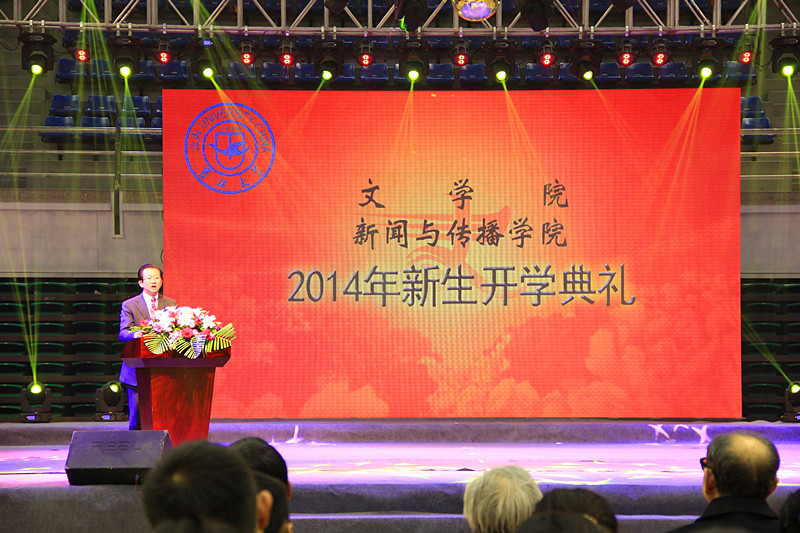 11月22日18时,心博官方网站_心博(中国)暨新闻与传播学院2014级新生开学典礼在中心校区体育馆隆重举行。吉林省军区第四干休所武明军政委、江夕洲所长,吉林大学哲学社会科学资深教授刘中树教授、林沄教授,吉林大学副校长、新闻与传播学院院务委员会副主任陈岗教授,校党委宣传部巩英春部长,学生心理健康指导中心赵山主任,学生就业创业指导与服务中心钟新主任,校团委姚毓春书记,研究生院管理处杨洲处长,注册与考试中心徐丽梅副主任,校党委宣传部韩月波副部长,校团委艺术部部长常玥,心博官方网站_心博(中国)院长兼新闻与传播学院院长徐正考教授,心博官方网站_心博(中国)党委书记陈密教授,院班子成员和各系主任、以及部分学生家长和2014级全体新生参加了典礼。典礼由副院长孔朝蓬教授主持。