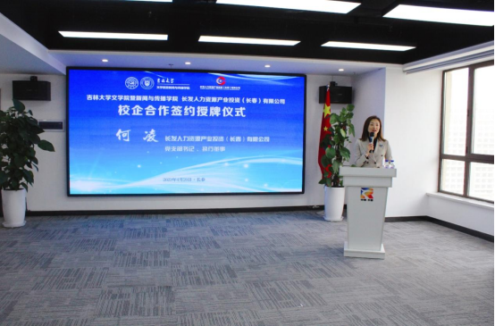 长发执行董事长何凌在发言中介绍了长发人力资源公司的基本情况,她表示,长发人力资源公司将为同学们打造高水平的就业实习平台,助力我院毕业生了解职业发展趋势、明晰职业发展规划。希望双方在新一轮东北振兴的政策窗口期已然开启的背景下精诚合作,共同努力构建人才交流培养可持续发展生态圈。为社会培养更多有理想、有追求的复合型人才。