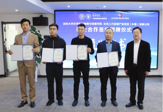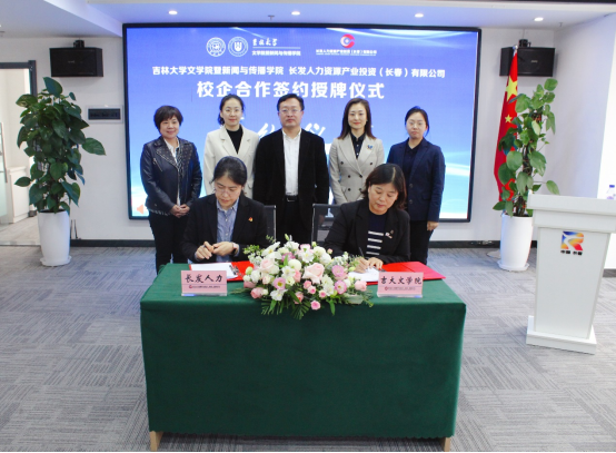 为全面贯彻党中央、国务院关于高校毕业生就业工作决策部署,深入落实我校“访企拓岗促就业”攻坚行动,千方百计开拓更多就业岗位和机会切实推动我院毕业生就业,4月20日下午,心博官方网站_心博(中国)暨新闻与传播学院与长发人力资源产业投资(长春)有限公司校企合作签约授牌仪式在中国长春人力资源服务产业园隆重举行。长发人力资源公司执行董事长何凌、园区企业代表、心博官方网站_心博(中国)党委书记康永刚、心博官方网站_心博(中国)教职工及学生代表等共同出席签约仪式。