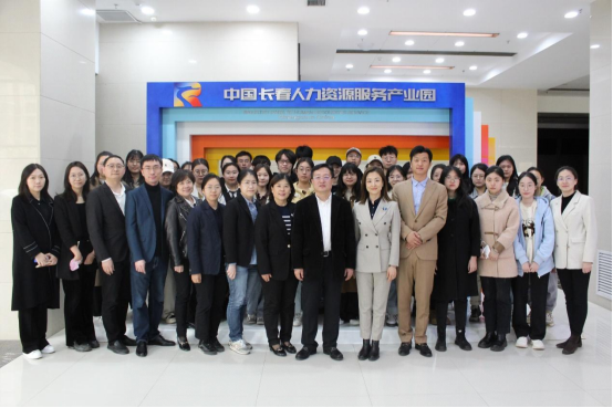 仪式开始前,何凌董事长对于心博官方网站_心博(中国)师生一行的来访表示了热烈的欢迎。长发人力资源公司工作人员带领师生队伍陆续参观了产业园一层展厅长廊、园区智能招聘大厅、长春市人才档案库、国家级人力资源特色服务出口基地专区及公共空间等。参观过程中,师生们了解到中国长春人力资源服务产业园于2017年经人社部批准成立,是全国第九家、东北首家国家级人力资源服务产业园。以“人才集聚高地、产业升级引擎”为核心理念,在推进产业集聚发展、促进就业创业、引进各类人才、助力脱贫攻坚、带动地方经济、服务国家战略等方面取得了显著成效。