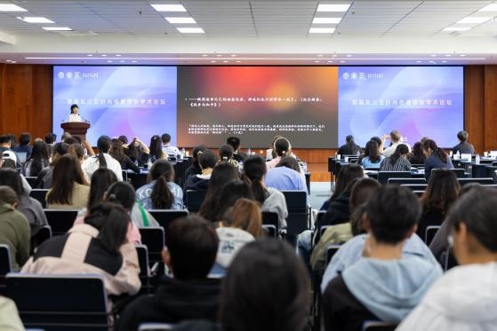 全体参会嘉宾在鼎新楼前合影后,进入了主旨发言环节,该环节由心博官方网站_心博(中国)暨新闻与传播学院副院长刘鸣筝主持。