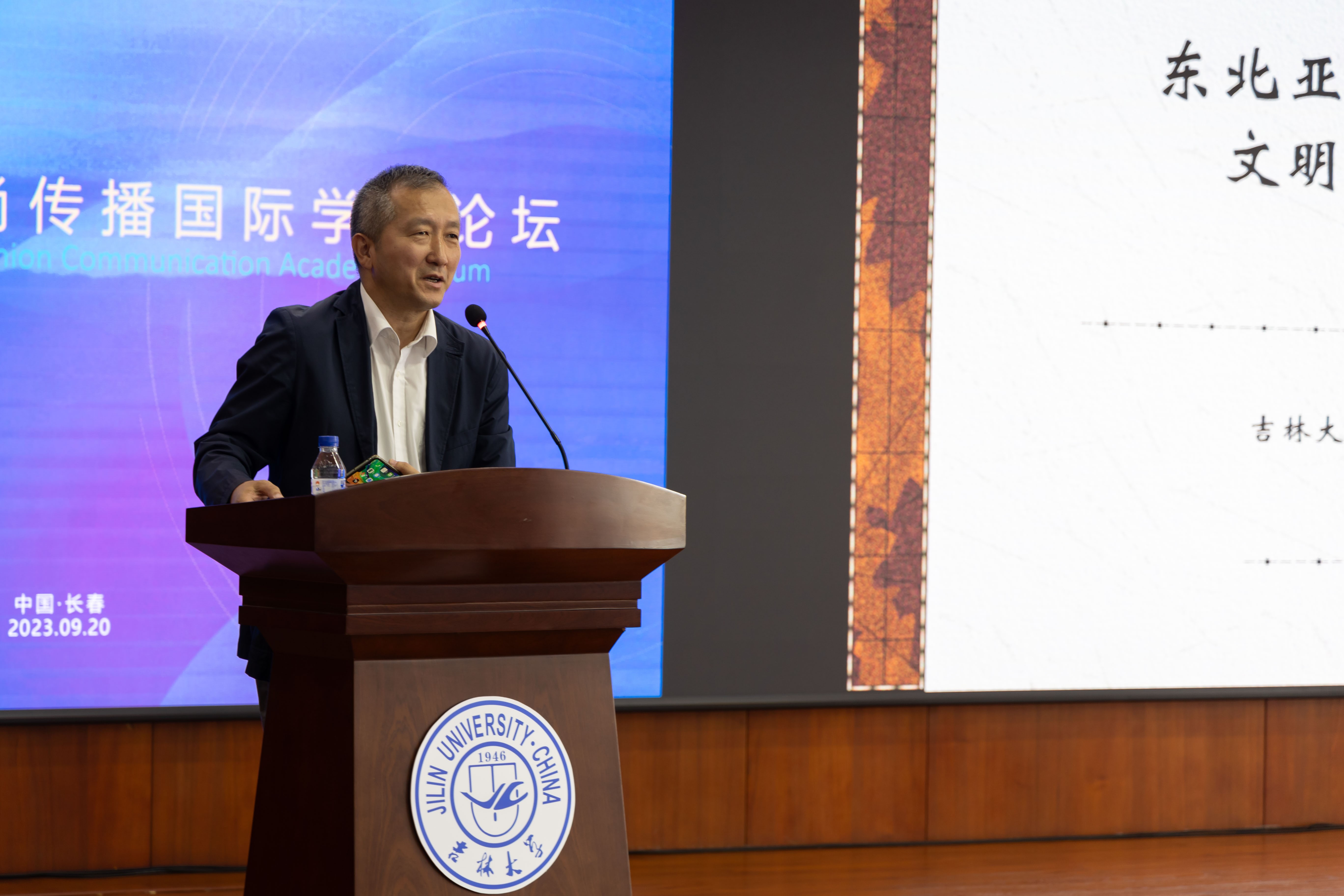 吉林大学党委常委、副校长蔡立东致辞,指出了东北地区在东北亚经济社会发展的重要地位,强调要对传播学广阔的发展空间进行把脉定向,做好“两结合”,认真思考吉林大学传播学的未来发展,想好今天做什么才能做好明天。本着守正创新的精神,扩大新闻传播学科的学科生产力、影响力。