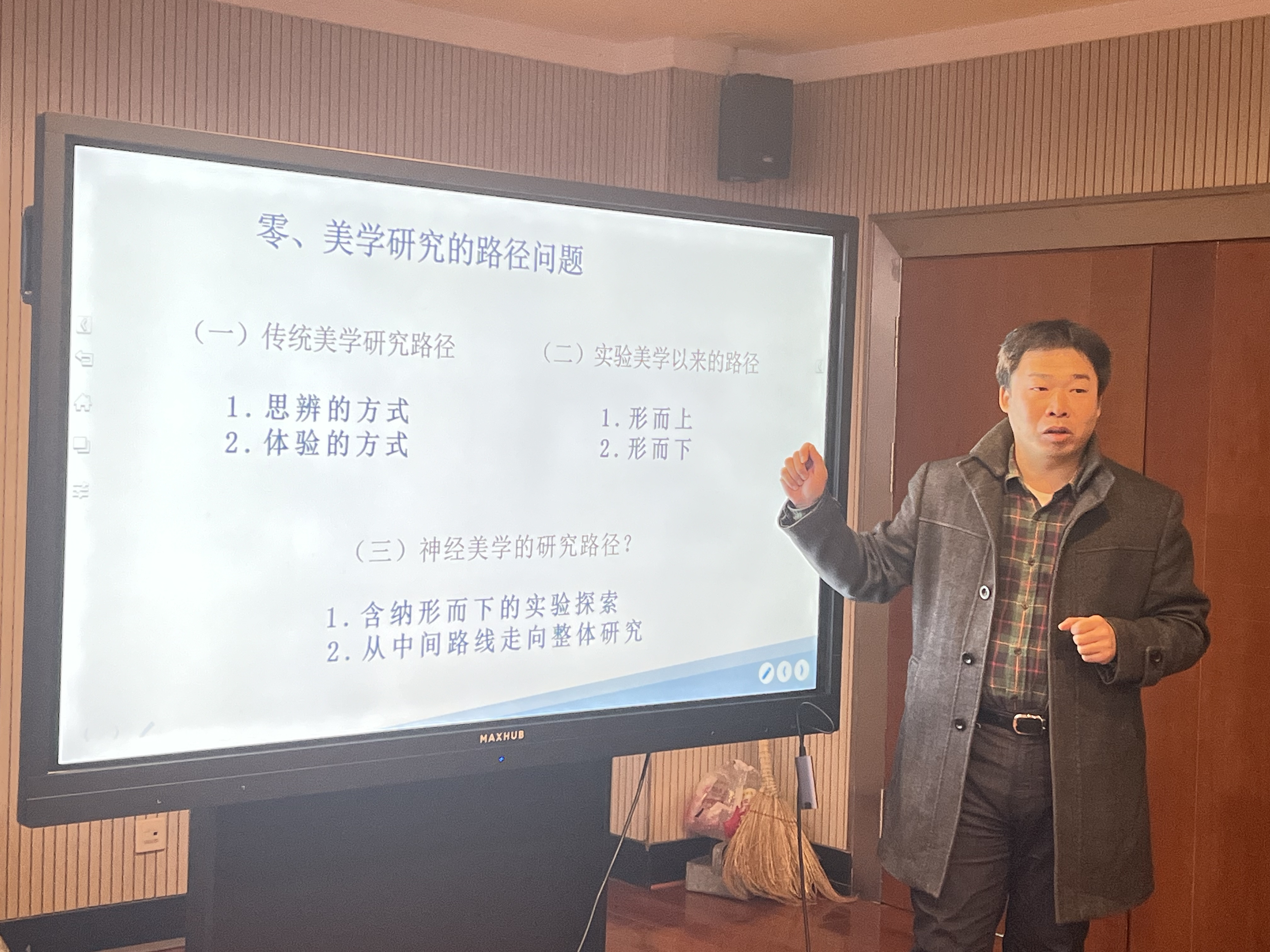 在评议与讨论环节,姜勇教授认为,报告在解释美学路径、特别是阐释神经美学整体研究方面,思路和结构比较清晰,但是具体的审美感知、审美体验如何测量,仍然需要在未来的神经美学发展中不断完善和补充。由兴波教授指出不同专业之间相互交流、研讨、学习,对于拓宽学术视野非常必要,听报告是同学们学习不同领域知识和发展动态的最高效方法。赵耀副教授在二十世纪美学发展的宏观视野中评价和定位了神经美学的理性精神旨趣。梁玉水教授从当代神经美学发展的前沿动态出发,指明了我校神经美学的优势和未来的努力方向。
