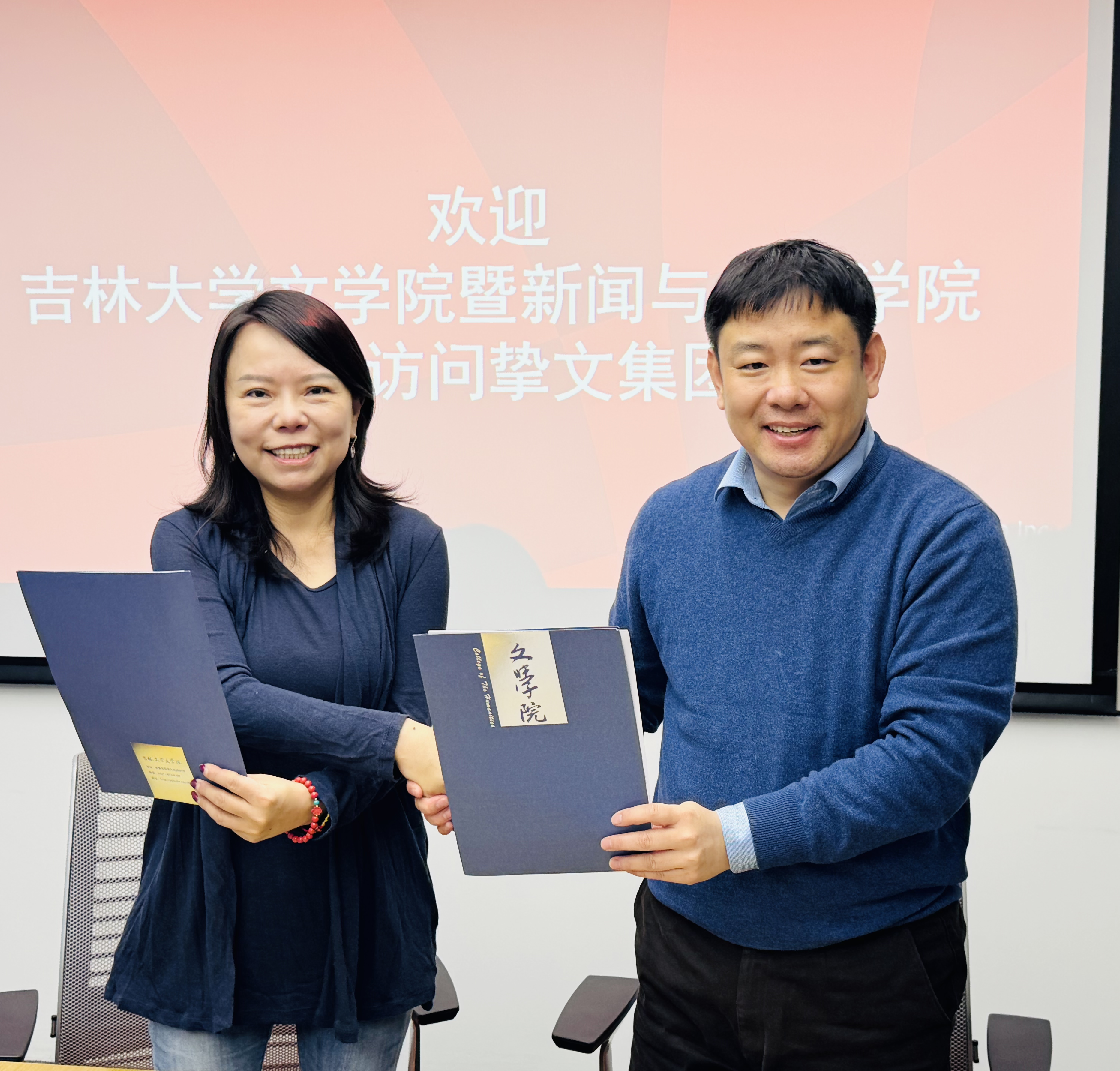 张丛皞院长、孔朝蓬副院长分别从学科建设、师资力量、科研成果等方面介绍了学院情况。张丛皞院长表示:“学院致力于培养适应新时代传媒生态的创新型人才,与挚文集团的合作将为师生提供多元化的实践平台,推动学术研究与行业需求深度融合。”