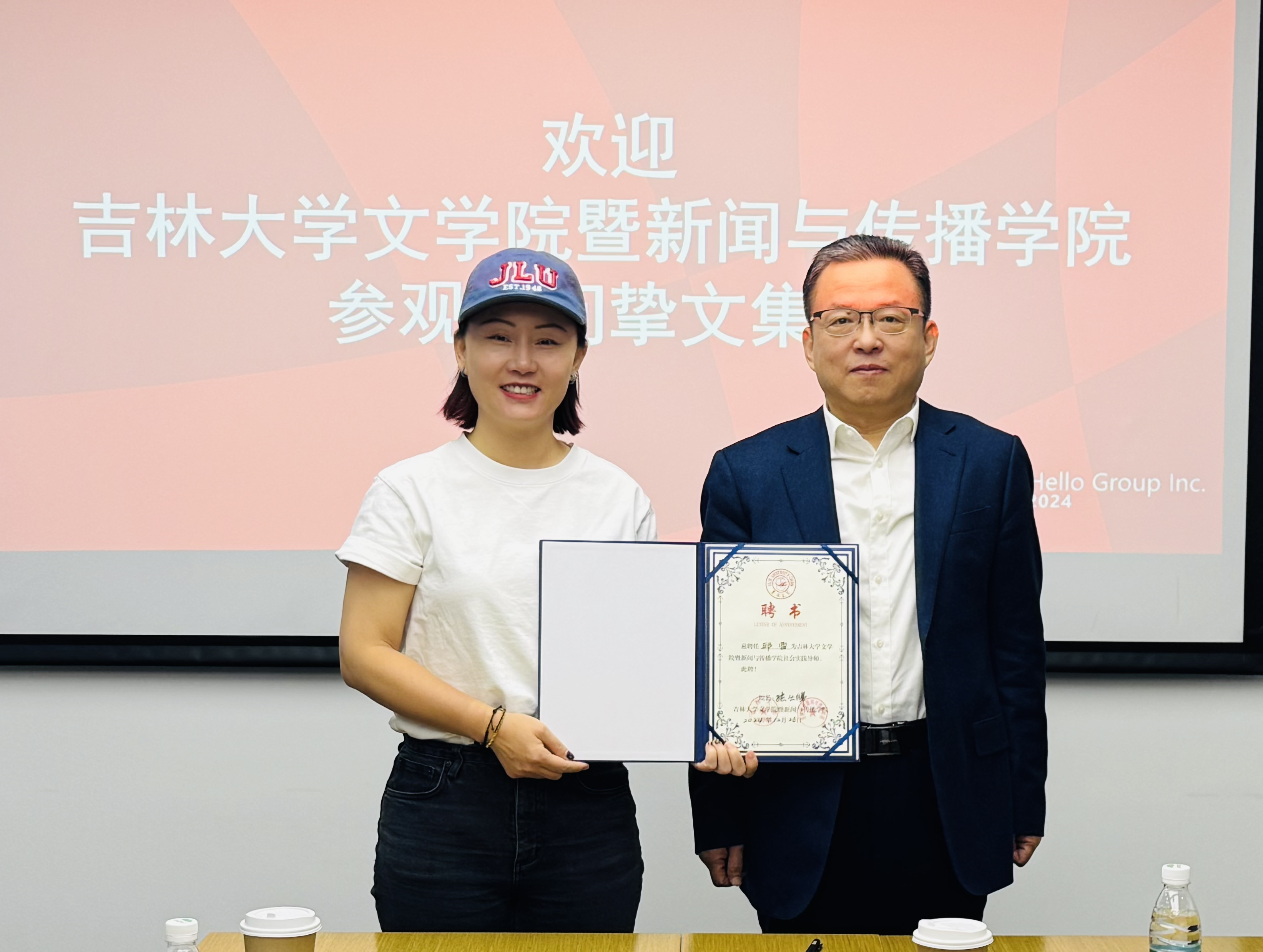 在合作协议签署环节,张丛皞院长与挚文集团人力资源副总裁王小薇正式签署“校企实习实践与就业基地”合作协议。随后,孔朝蓬副院长向挚文集团授予“心博官方网站_心博(中国)暨新闻与传播学院实习实践基地”牌匾;李子君副院长向挚文集团直播运营高级总监邱雪、人力总监刘博、招聘总监陈浩3人授予“社会实践导师”聘书。未来,社会实践导师们将积极参与学生职业能力培养,助力人才成长。