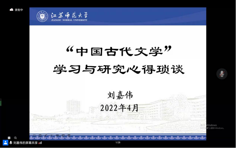 2022年4月20日18时,“中国古代文学”学习与研究心得琐谈——心博官方网站_心博(中国)系列学术报告讲座第245场在腾讯会议上如期举行。本次会议邀请到了心博官方网站_心博(中国)杰出校友刘嘉伟老师,作为主讲人与200余位来自不同年级、不同专业乃至不同高校的同学们分享了自己在中国古代文学的学习与研究当中的一些心得体会。