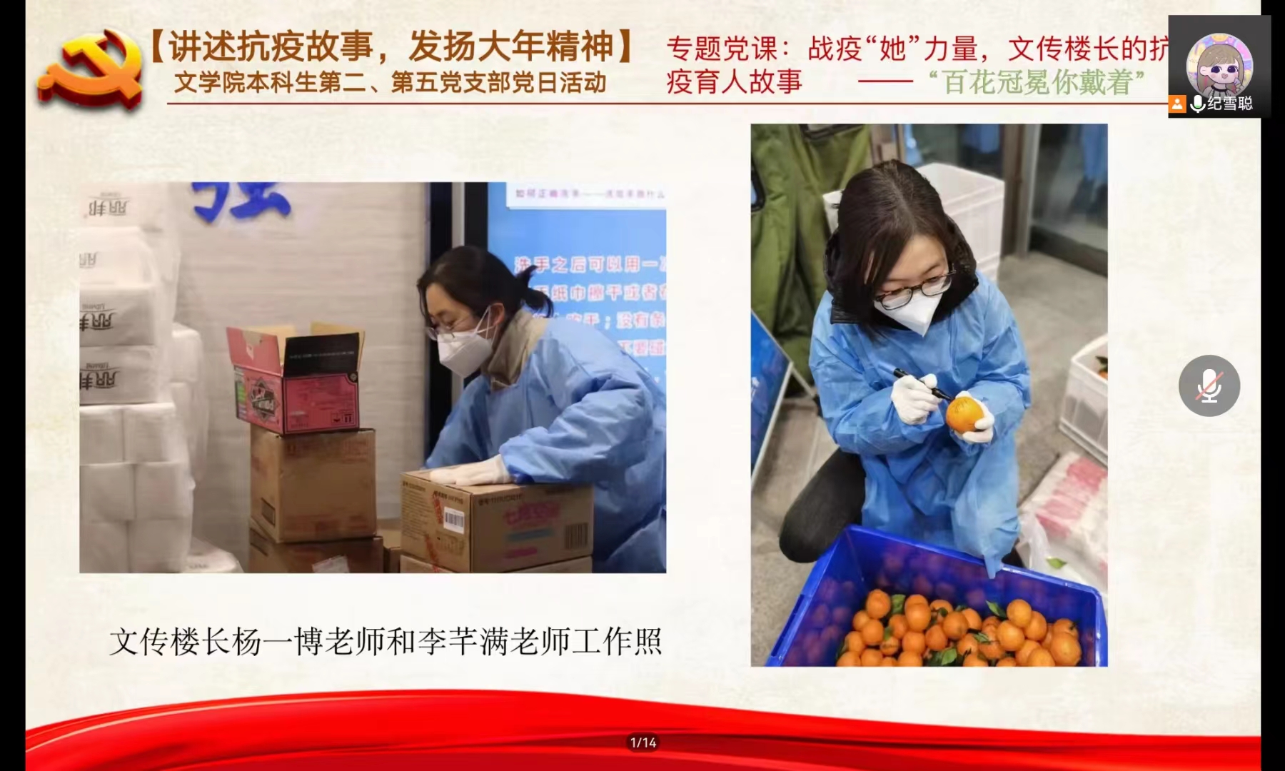 活动第二项,支部书记曲昭琦围绕“抗疫育人”讲主题党课,生动为大家讲述了《战疫“她”力量——文传楼长的抗疫育人故事》。杨一博老师是南苑二公寓楼长,李芊满老师是南苑三公寓楼长,在前线细密防控,身体力行作针、用额头汗水作线,将其落细落实、织牢织密。两位女老师不仅战疫斗士,也学生们的贴心姐姐。承担起照顾大家、解忧纾困的重要任务,努力做到学生的问题必答复,学生的困难必解决,为学生们提供全面细致保障。在学院的组织下,师生勠力同心,成立了2个公寓楼临时党支部、组建了3支党员突击队和1支团学突击队,设立了11个党员先锋岗、划分了7个党员责任区、4个临时团支部,学院组建了“文传防疫志愿服务团队”,在疫情期间与学院老师一道保障大家的生活。积极焕发抗疫正能量,生动开展系列主题教育、年级大会、协同班主任开班会、班委例会等,隔屏相见,心却相牵。团学组织还开办了一系列精彩有趣、富有意义线上活动,例如精读大赛、线上观影活动,读书会、文艺作品展览、线上培训等的活动帮助同学们找回了校园日常的安全感和舒适感。老师们利用语音、文字等线上手段,与寝室内存在困扰的同学们谈心谈话,给予同学们关心关爱。通过这场生动的党课,同学们深刻感受到吉大抗疫的成功实践已深深熔铸于吉大人的精神血脉,感受到文传学院的两位楼长老师用坚毅如钢的信念、铿锵如铁的行动写就的满是“战疫”又有“诗意”的日常。