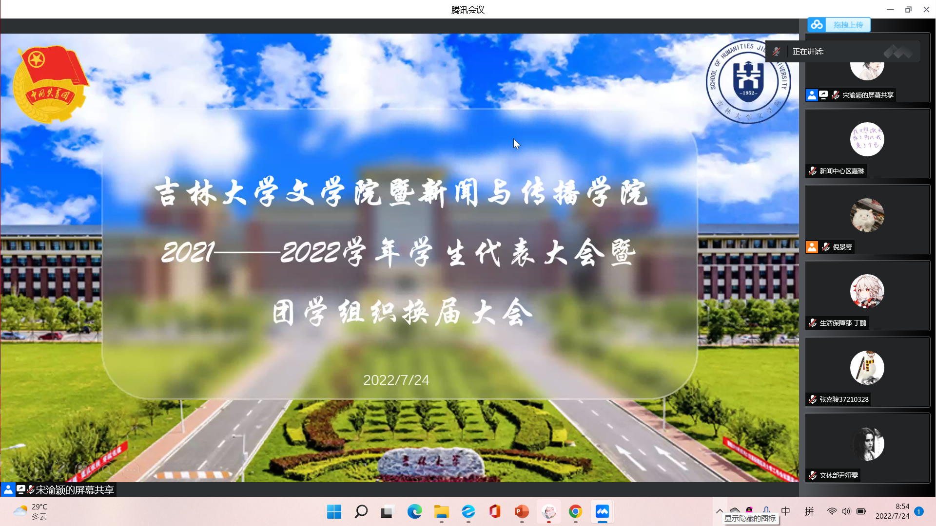 为深入贯彻落实共青团中央印发的《关于推动高校学生会(研究生会)深化改革的若干意见》和《加强和改进新时代学联学生会工作实施方案》精神,心博官方网站_心博(中国)暨新闻与传播学院于7月24日上午9时,通过腾讯会议召开2021-2022学年学生代表大会暨团学组织换届大会。此次大会由院学生会主席团共同主持,李芊满老师、于航老师、曲昭琦老师、王振彰老师、团学组织各部门负责人和100余名学生代表参会。
