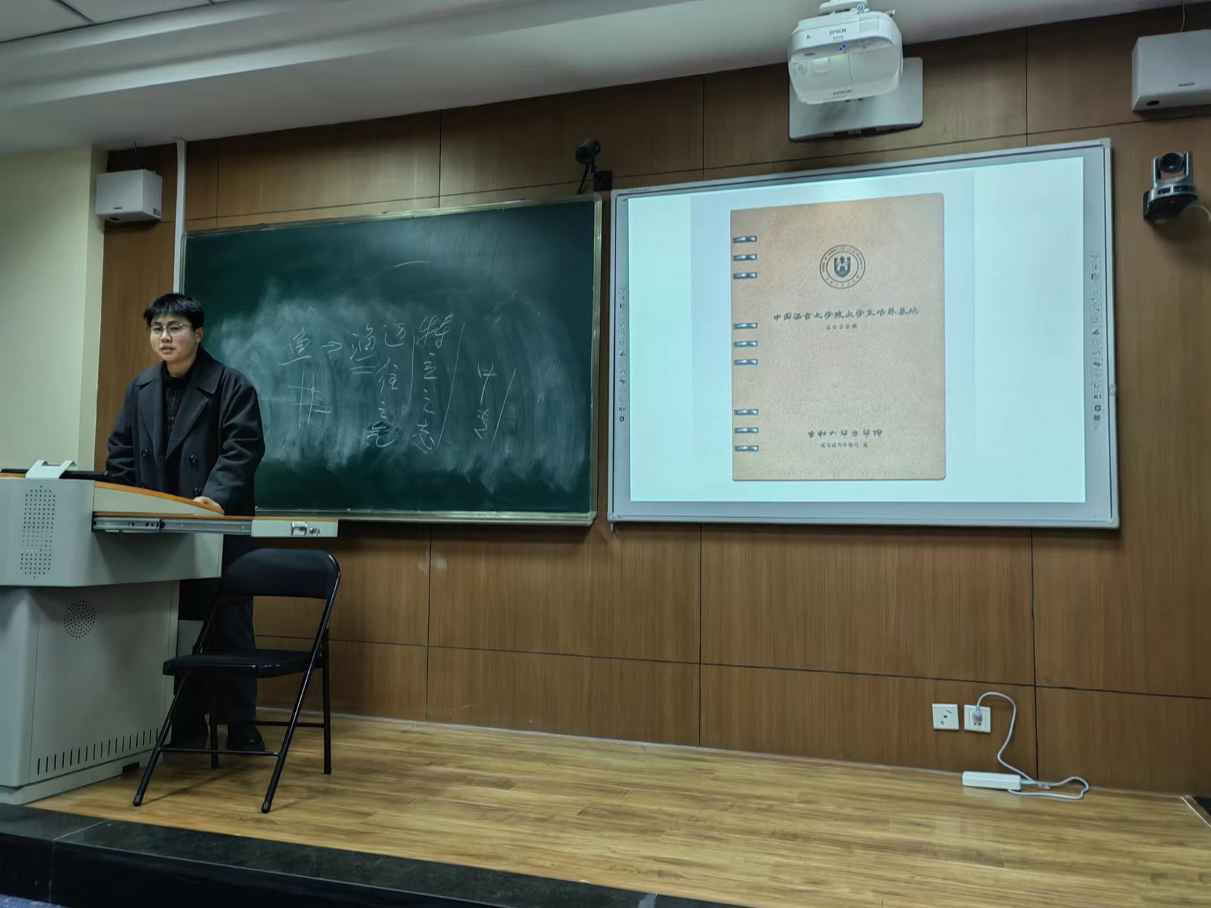 杨一博总结了同学们上一学期的学习生活,对大家提出表扬与鼓励,随后重点为同学们介绍了2022级中国语言文学拔尖基地的成长档案设计制作情况,向同学们讲解了成长档案的设计模式与主要用途,面向同学们征集编辑意见,师生共同致力于完善拔尖基地班的管理建设工作。辅导员王振彰老师从班委设置、日常工作等方面对同学们提出指导性意见,助力中国语言文学拔尖基地班走向更美好光明的未来!