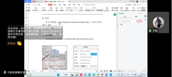 接着,于航老师向大家演示了吉林大学第二课堂系统的使用方法,并强调了一些值得同学们注意的细节,如上传日志的方式和频率、组队人数等问题。
