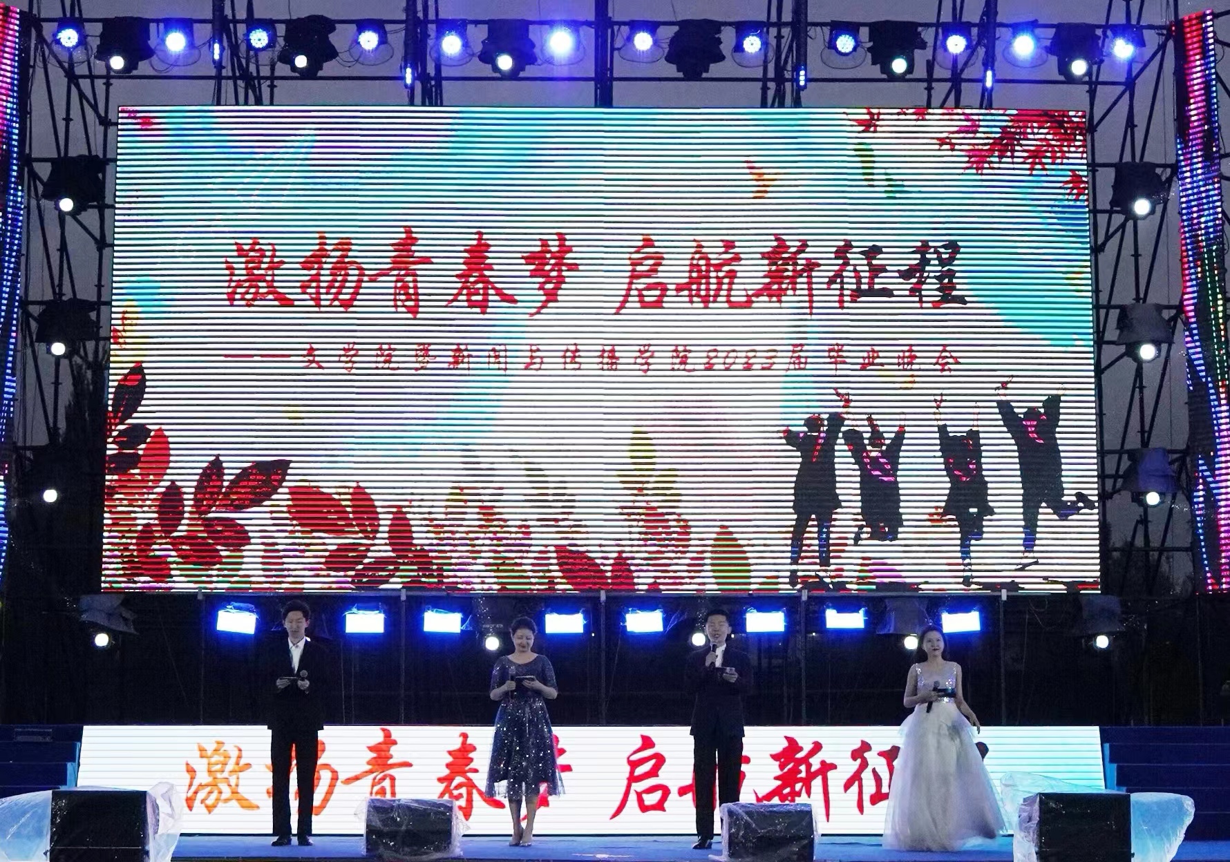 2023年6月20日下午七点,心博官方网站_心博(中国)暨新闻与传播学院2023届毕业晚会在中心校区田径场上准时开始。