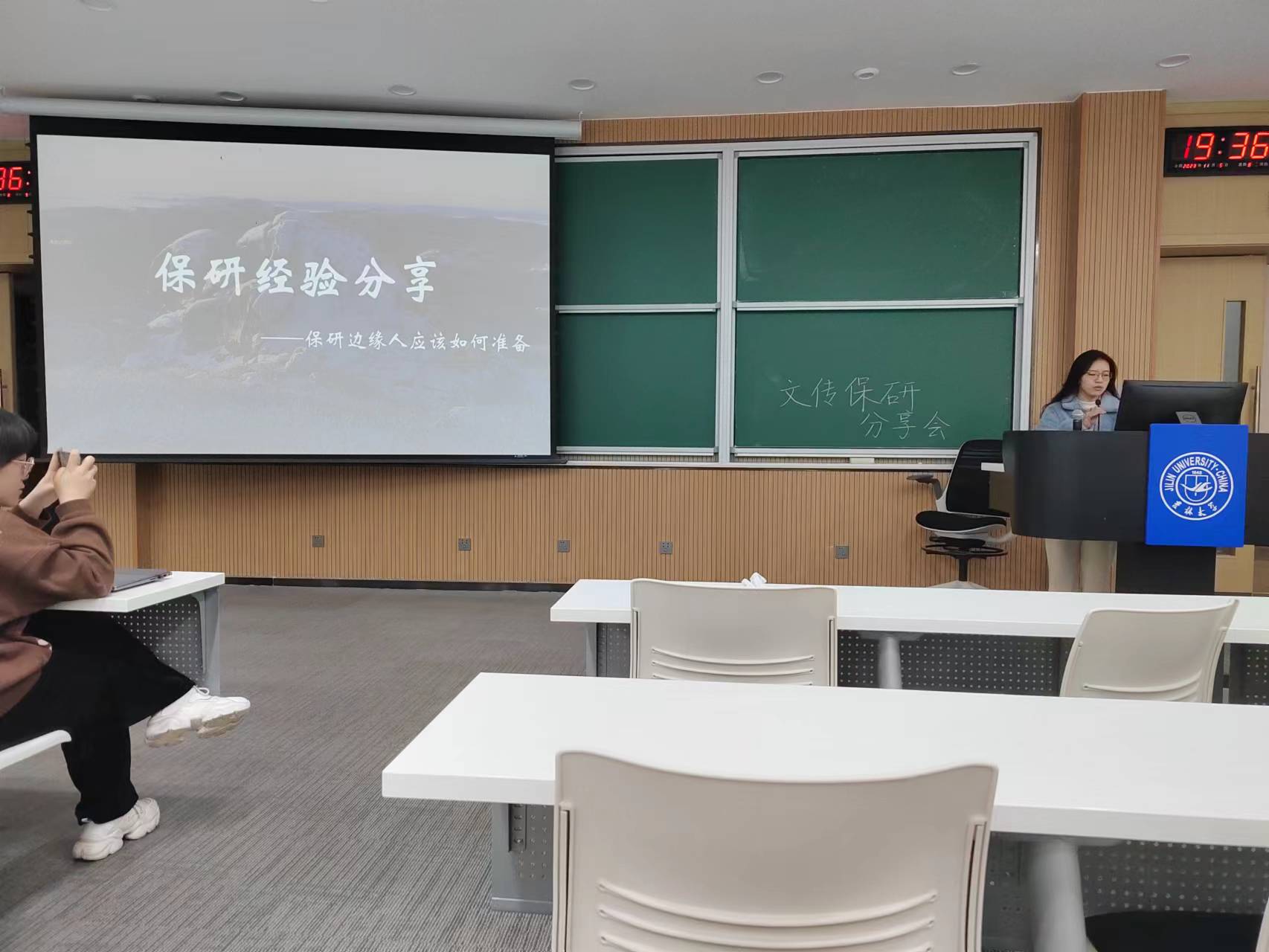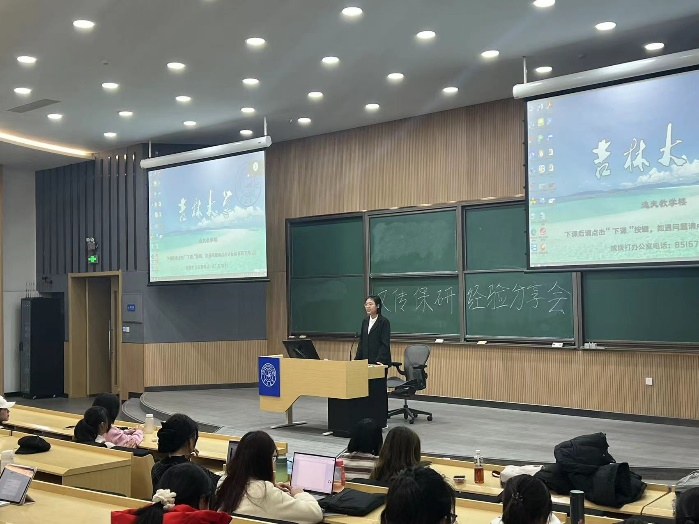 在第二场分享会中,周铭蕊以保研时间为线索讲述她的保研经历,细致地介绍了在保研不同阶段的具体事务,分析了高校面试的重点,最后鼓励大家“拼尽全力,无悔就好”。涂子慧分享了自己关于保研政策的分析,特别分析了对学业成绩处于保研边缘的同学较为友好的加分方式。于蕙宁介绍了自己选择吉林大学的原因,讲述了保研前期需关注的事项并介绍了一些关于广告学专业的参考书籍。