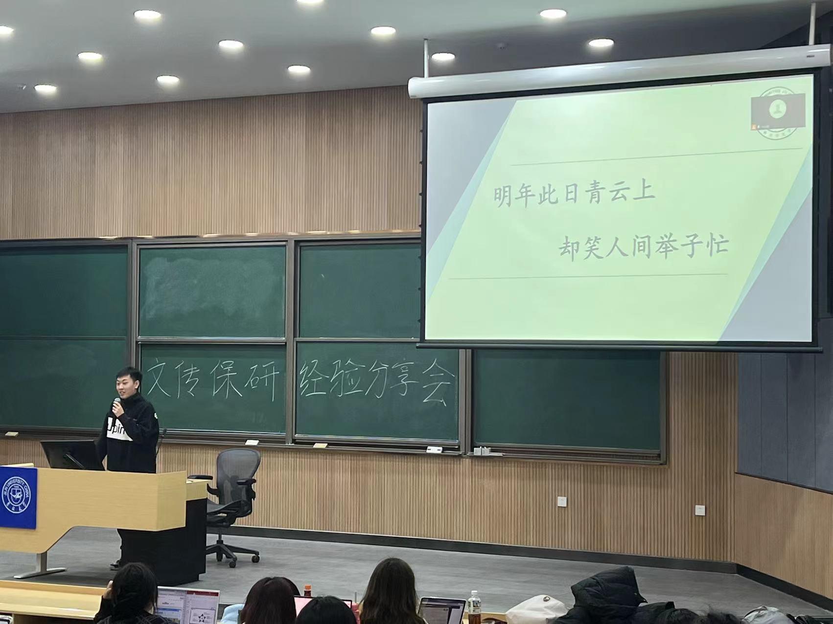 分享会伊始,黄宝申系统介绍了行政保研的具体内涵、基本条件、成绩和排名要求,为同学们提供不同的保研思路。方振涛则围绕“夏令营+预推免”的保研经历,帮助同学们明确了保研的基本要求、重要时间线、网上申报需要准备的材料与相关事宜。宋其芳从“抓住资格,具象目标,规划时间,实战检验”这四个方面进行分享,分析高校关注点和核心竞争点,为同学们提出努力方向的建议。李姝逸主要就对外汉语教学方向系统介绍了不同院校考察特点及录取情况,以及需要做的准备。张怡茹介绍了出国方向的保研信息,提示同学们审慎考虑学校与深造专业方向选择,最后梳理了一些针对保研面试的注意事项。潘雨欣强调要把主要精力放在专业课的学习上,积累专业知识,提升个人专业素养。韩雪芳就择校与择专业,夏令营与预推免等保研事项展开具体介绍,提示同学们要结合个人实际情况进行衡量取舍。