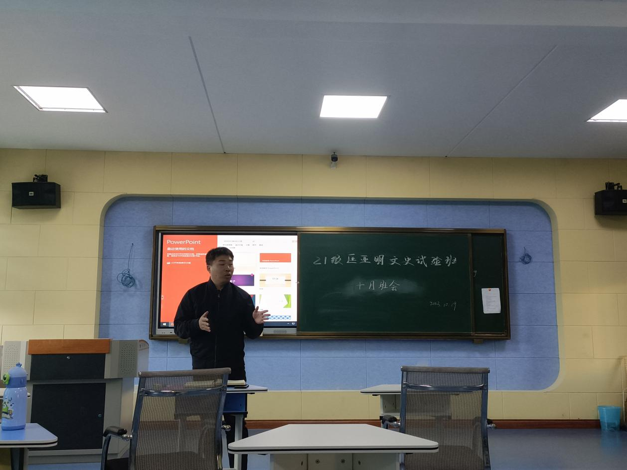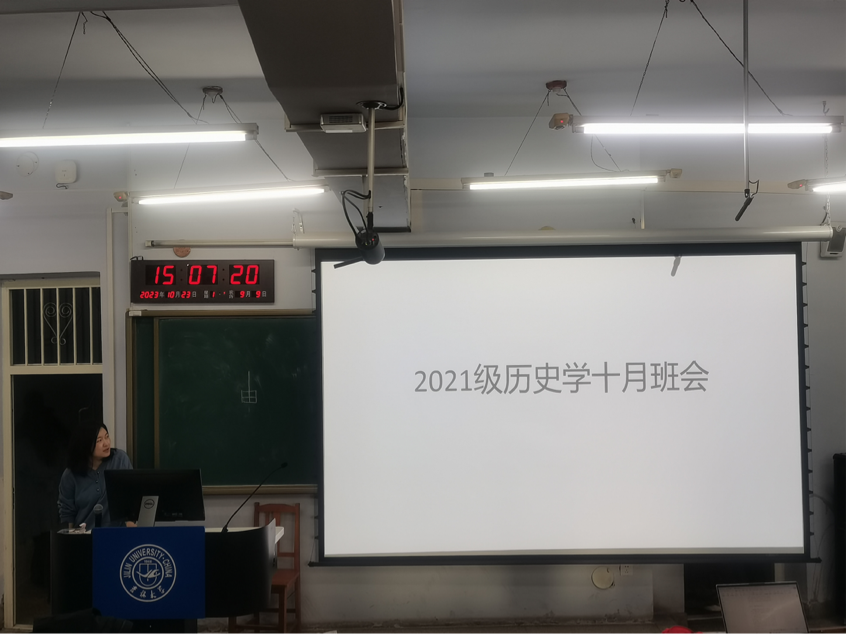 2023年10月23日,心博官方网站_心博(中国)21级历史学专业于萃文楼第一阶梯教室开展10月主题班会,班会由班主任陶莎老师、班长袁仁斌同学主持。在班会上,陶莎老师首先向同学们简要了解同学们的学习和日常生活情况,解答了同学们关于论文写作的相关疑问,并分享了文献综述检索和写作的方法与技巧。随后杨佳欣老师面向本班同学们简要介绍了未来学业规划和职业规划的必要性和意义,提醒同学们对学业以及毕业去向做出相应的规划。最后陶莎老师引导同学们关注国家思想文化领域的各项方针政策,学习习近平新时代中国特色社会主义思想,树立坚定的理想信念。