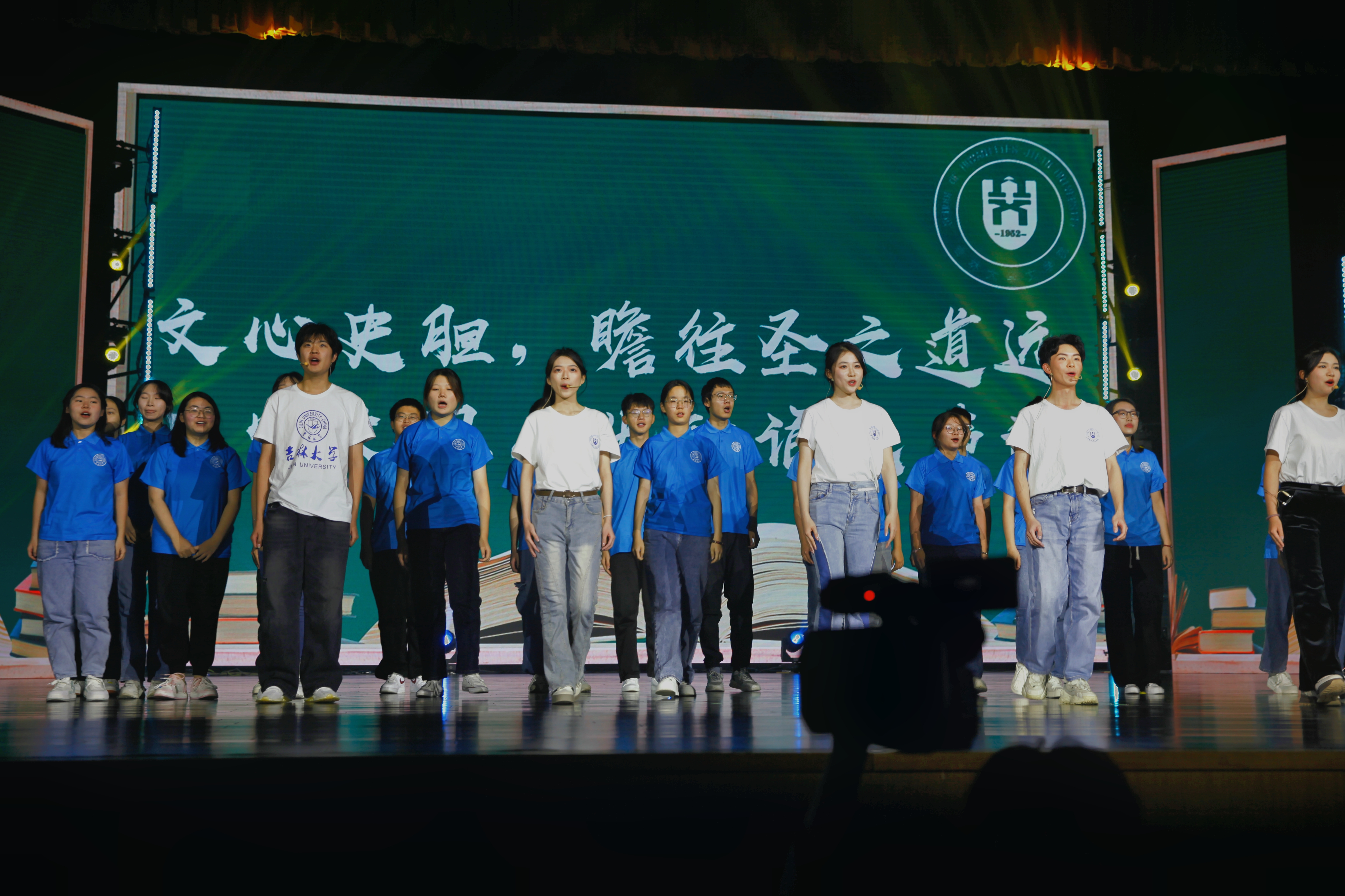 最后,伴随着振奋人心的校歌与现场师生热烈的掌声,晚会圆满落幕。本场晚会从节目策划、舞台设计、视频拍摄到排演的一帧一幕,均由学院师生团队独力完成。这既是一场丰富的校园文化活动,更是一次专业实习实践的的闪亮舞台!未来,文传学子将更加踔厉奋进,继续传递属于我们的“文韵新声”!