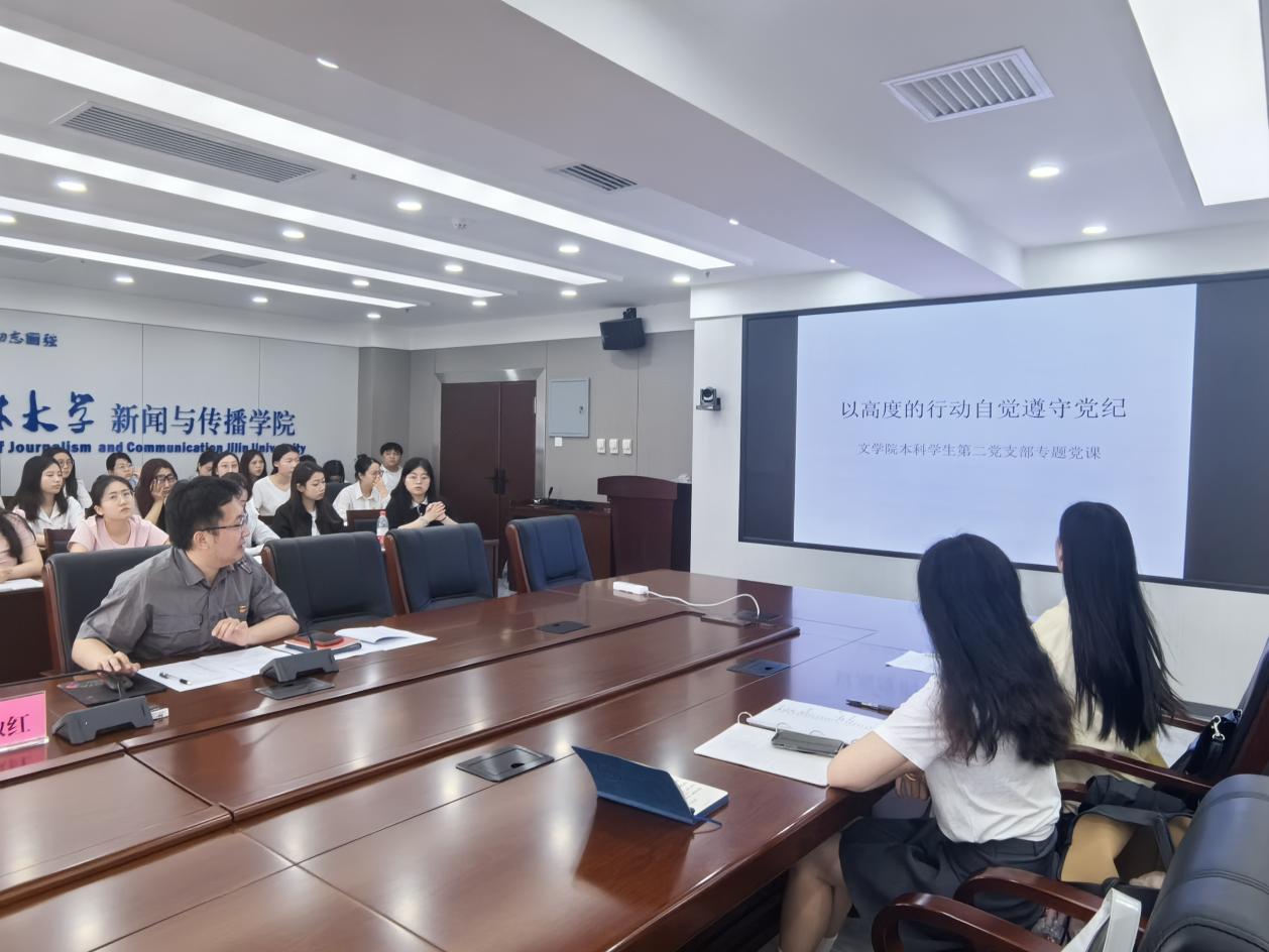 为加强对《中国共产党纪律处分条例》的学习,2024年6月13日,心博官方网站_心博(中国)本科学生第二党支部开展党纪学习教育专题党课,学生党委学生工作部分管心博官方网站_心博(中国)暨新闻与传播学院党建工作的组织员张淑红老师参会指导,党课由党支部书记曲昭琦讲授,全体支部党员参加。