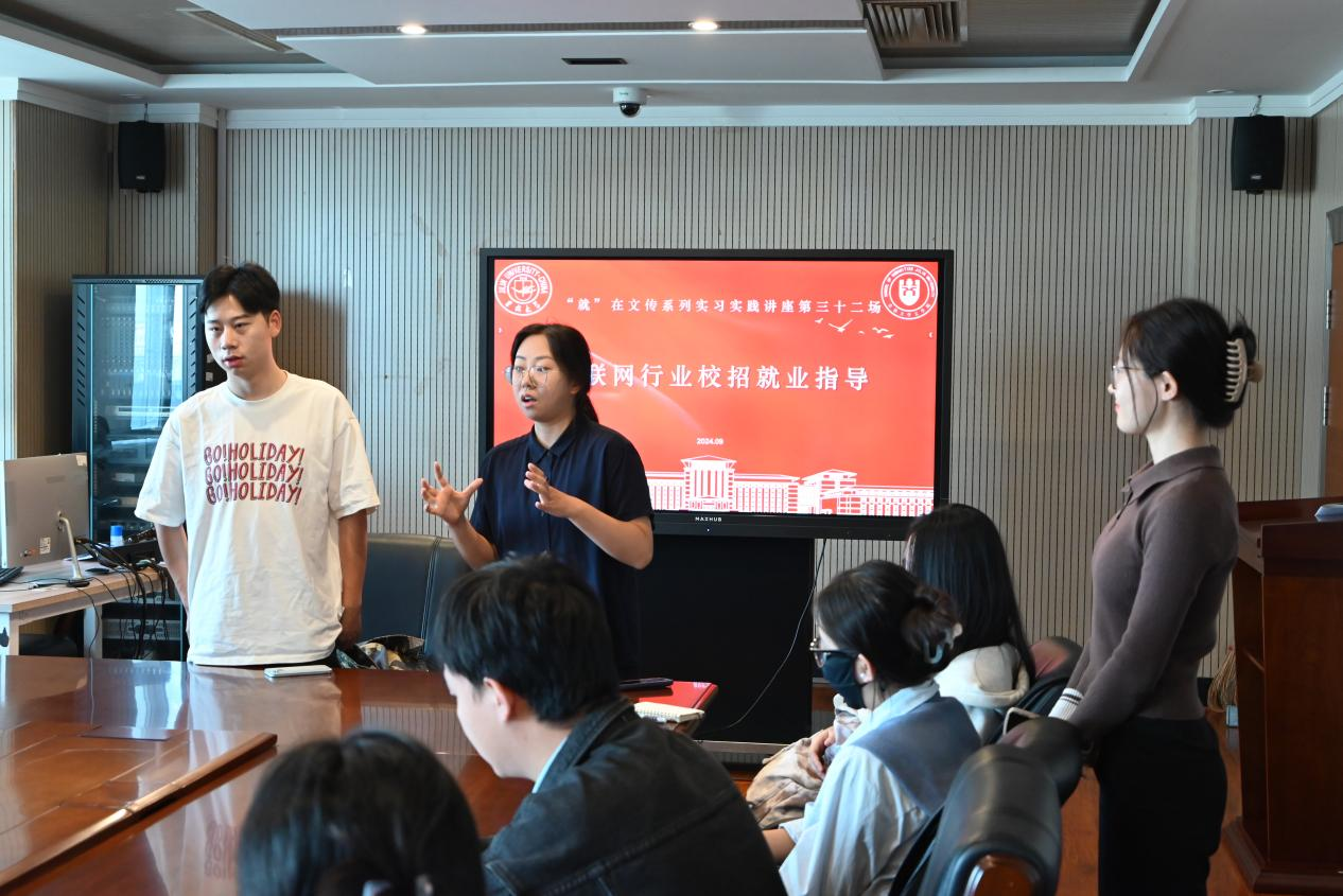 为进一步促进我院毕业生高质量就业,推动就业服务精准化、就业指导专业化,9月19日上午10时,由心博官方网站_心博(中国)暨新闻与传播学院主办的“就”在文传系列实习实践报告会第三十二场——《互联网行业校招就业指导》在东荣大厦11楼会议室如期举行。本次讲座特邀了2017级广告学专业校友、现就职于阿里巴巴集团的雷航作为主讲嘉宾,为即将步入职场的同学们提供了宝贵的求职指导和经验分享。学院党委副书记杨一博和部分毕业生同学参会,2021级辅导员杨佳欣主持会议。