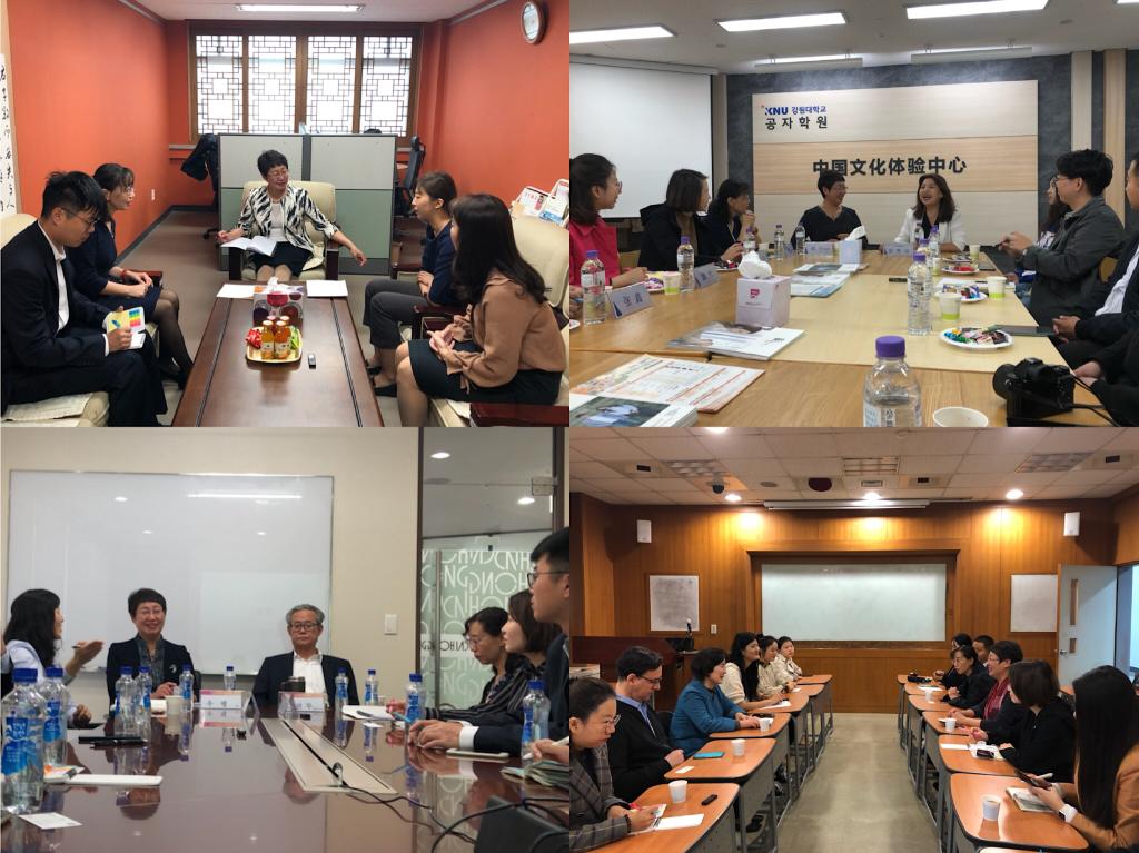 国立江原大学位于风景秀美的江原道春川市。江原大学孔子学院韩方院长朱镇祐、中方院长黄秀坤热情接待了调研团队。黄院长在孔院工作的两年来,为孔院发展打开了新局面。她为海外志愿者申请奖学金及各种福利,成立江原大学孔子学院校友会,孔院每年积极参加学校举办的慈善晚会,黄院长个人的书法作品的拍卖所得全部捐助江原大学的贫困学生。黄院长还带领孔院走出学校,积极投身于地方社会服务,通过开展为春川市民义演、深入社区、敬老院奉献爱心等活动,加强与当地人民之间的交流。今年春节推出现场免费赠送春联活动,受到春川市民热烈欢迎,《江原道日报》对此进行了报道。未来,黄院长表示要进一步扩大校友会平台,开展更多面向社会的精彩活动,并计划运用直播、短视频等新媒体手段来增加孔子学院的社会影响。