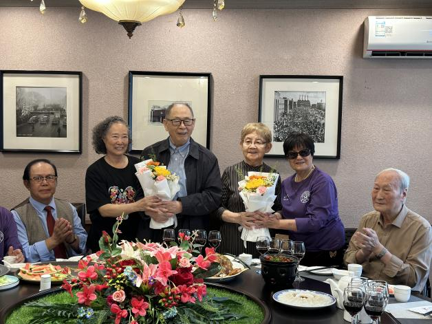 中午,64级中文系同学以及家属二十余人,与老校长刘中树、夫人黄曼平、王家骐院士齐聚饭店。“中二班”的老同学们直抒胸怀,回忆起一件件难忘的往事,一个个激动不已,不少同学热泪盈眶,泣不成声。