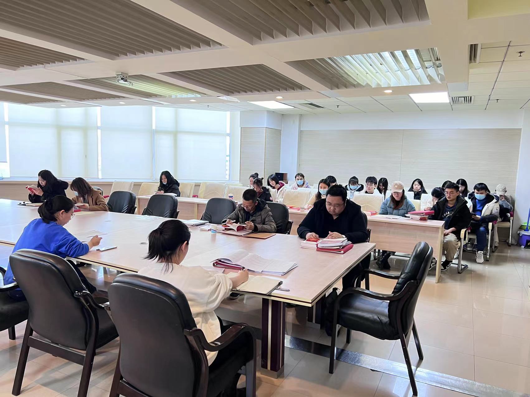 随后,学院党委办公室主任黎晨传达了《吉林大学深入学习宣传贯彻党的二十大精神工作方案》、《心博官方网站_心博(中国)党委学习宣传党的二十大精神工作方案》和《心博官方网站_心博(中国)党委学习宣传党的二十大精神工作台账》,明确了本年度的主要学习任务和工作开展重点;各党支部书记围绕“三会一课”、党日活动、主题实践等组织生活的开展落实汇报了学习宣传党的二十大精神的工作情况及学习计划;最后,学院党委办公室老师刘媛博以基层党组织建设工作为主题对各党支部书记进行了培训,进一步强调了党支部的 命名规范、组织生活制度规范、会议记录规范及新时代吉林党支部BTX建设等事项。