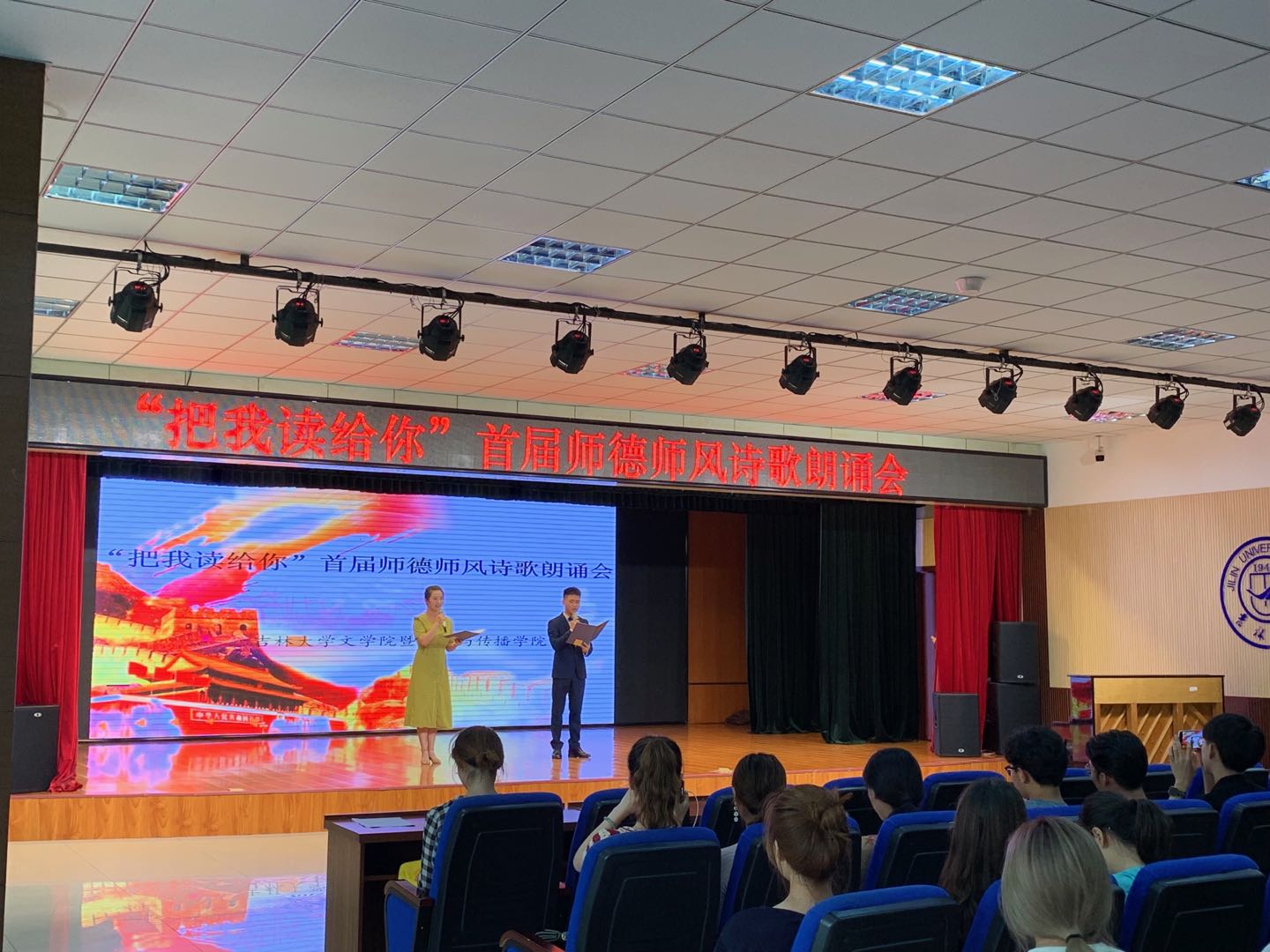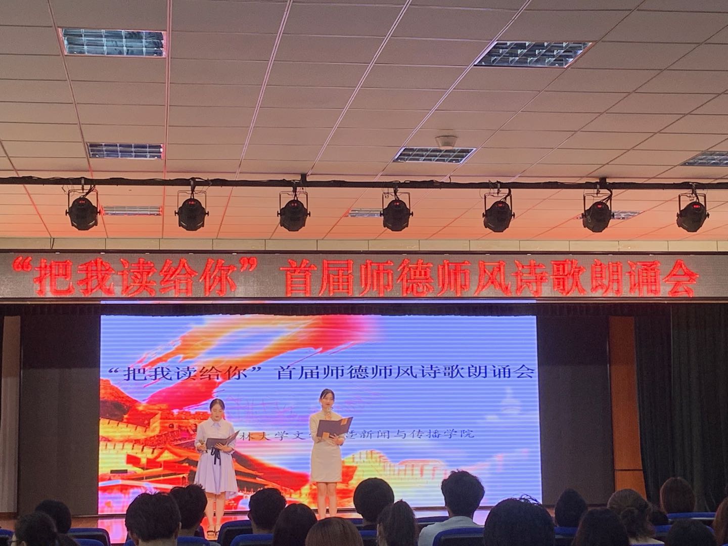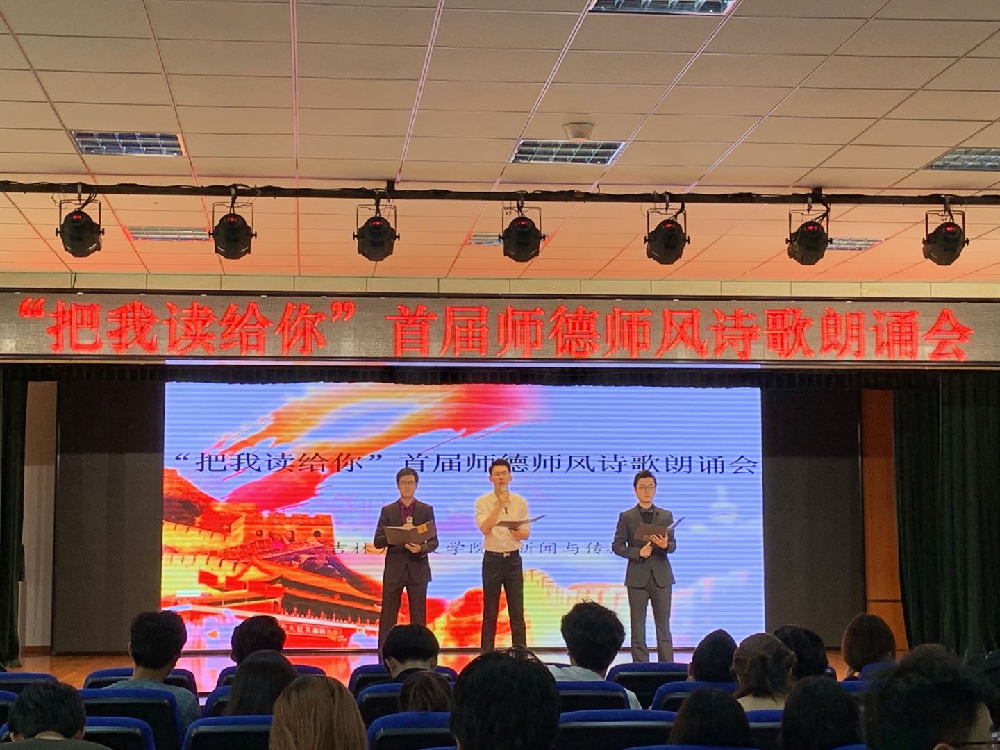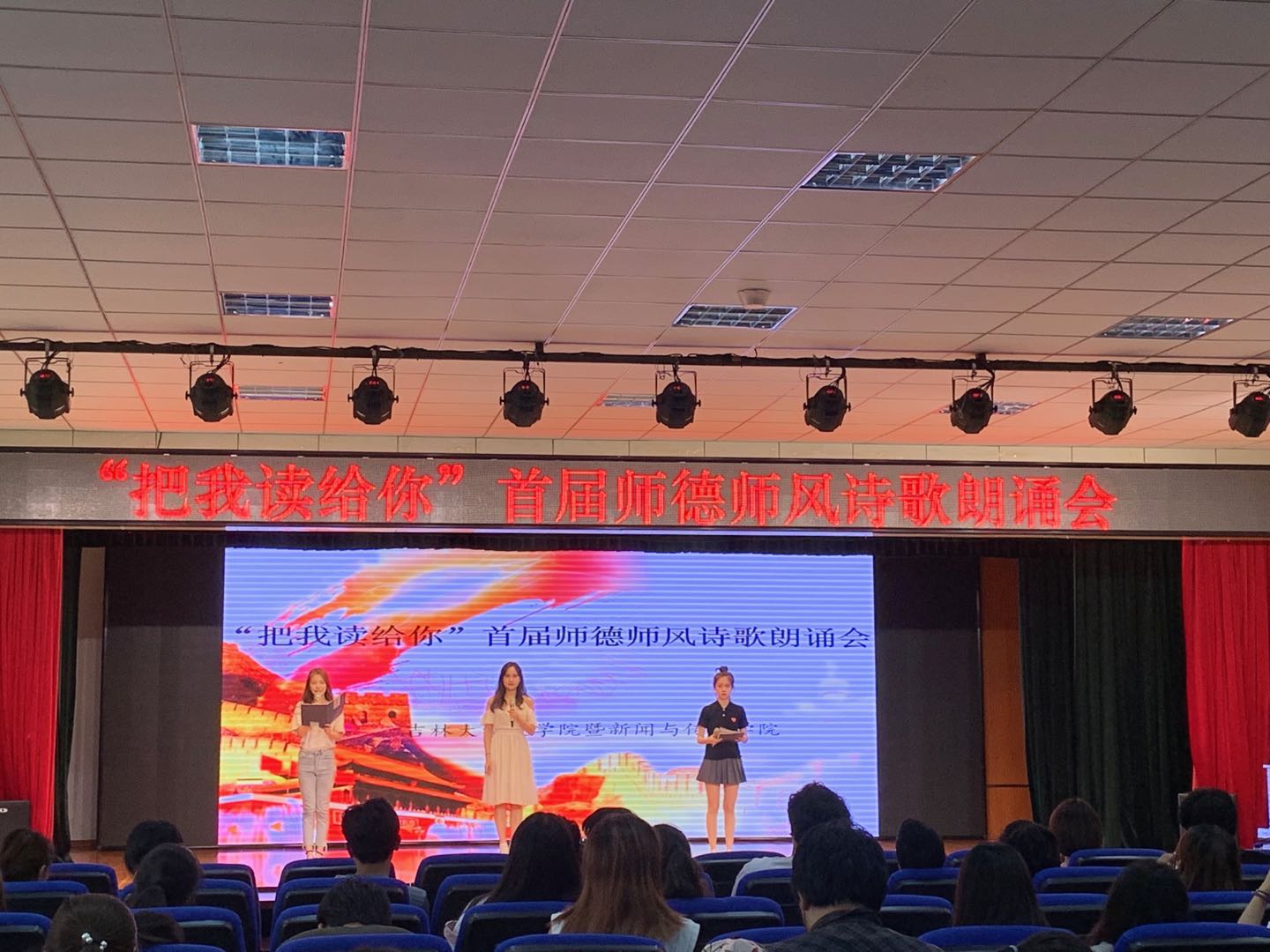 为进一步巩固立德树人文化成果,传播高尚师德师风,浓厚文化育人氛围,心博官方网站_心博(中国)暨新闻与传播学院于2019年9月5日下午5点30分在田家炳礼堂举办了“把我读给你”首届师德师风诗歌朗诵会。新闻与传播学院广播电视艺术系副主任张芳馨老师作为点评嘉宾出席了本次活动。