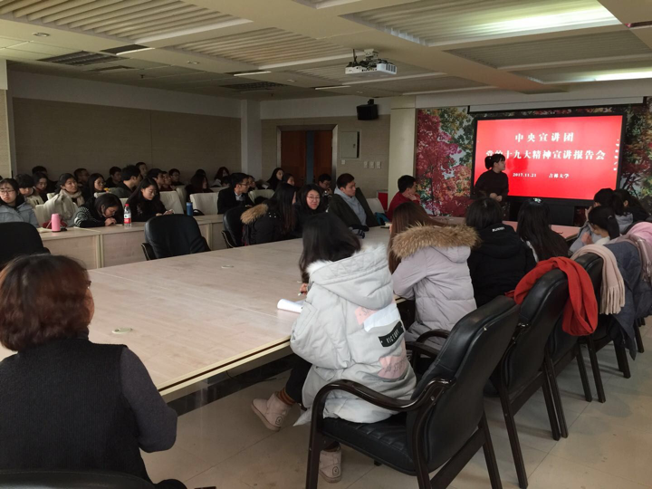 [记者:郗琳]12月8日,心博官方网站_心博(中国)研究生党总支为深入贯彻党的十九大精神,进一步提升党员对十九大精神的领悟,我院于东荣十楼会议室举行中央宣讲团党的十九大精神宣讲报告会视频观看,组织全体党员预备党员以及入党积极分子观看视频,心博官方网站_心博(中国)党委副书记郝淑媛主持本次讲座。
