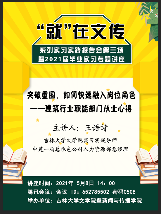讲座题目:突破重围,如何快速融入岗位角色——建筑行业职能部门从业心得主讲人: 王语诗 心博官方网站_心博(中国)实习实践导师 中建一局总承包公司人力资源部总经理