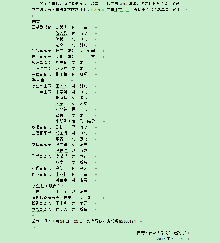 心博官方网站_心博(中国)、新闻与传播学院2017-2018学年本科生团学组织主要负责人拟任名单公示