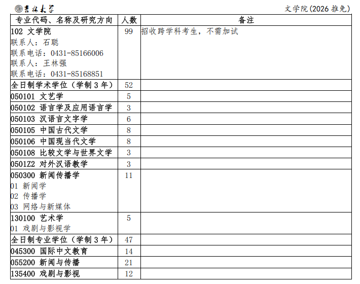 3.《吉林大学2026年接收预推荐免试研究生申请表》扫描件一份(见附件,需确定获得推免资格并加盖公章)。